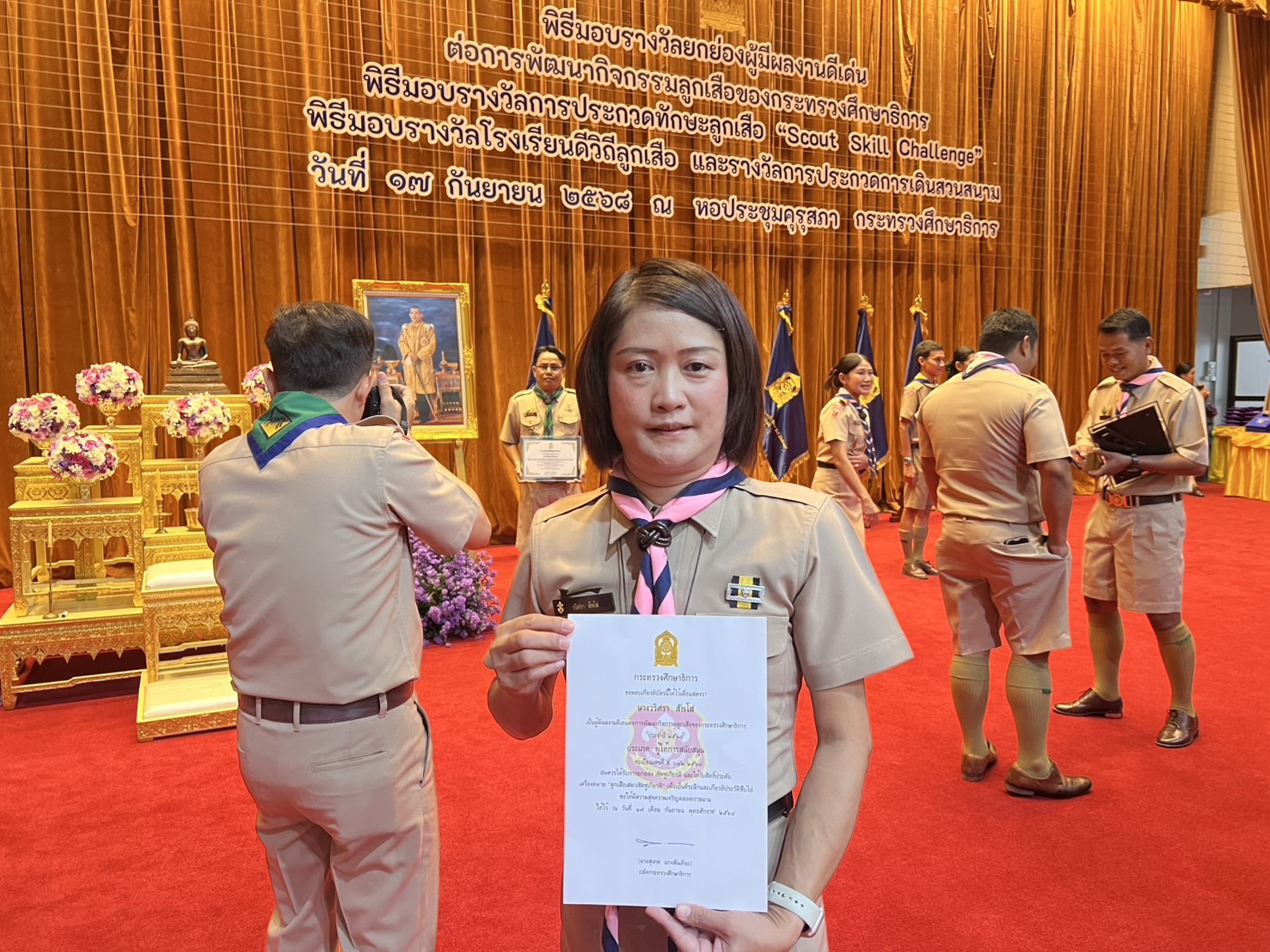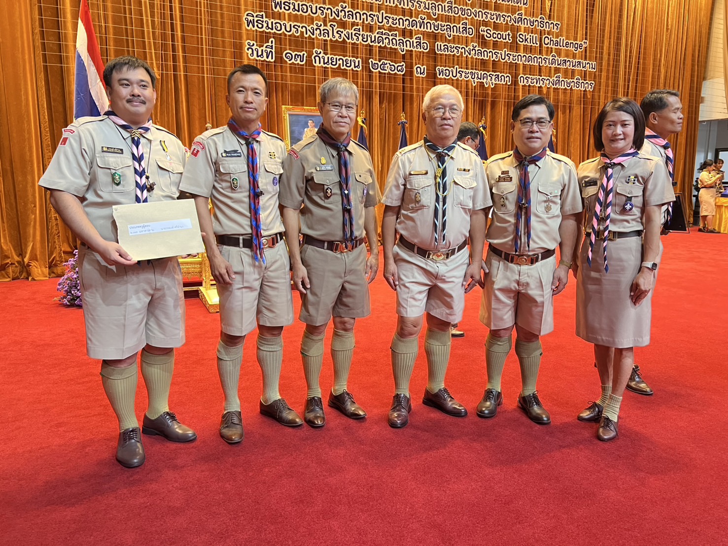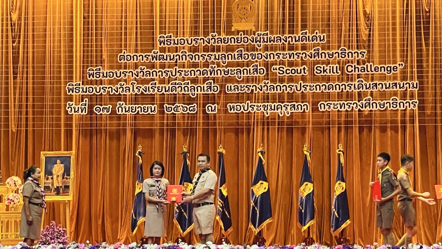 ดร.สุเทพ แก่งสันเทียะ ปลัดกระทรวงศึกษาธิการ เป็นประธานในพิธีมอบรางวัลด้านลูกเสือ “ลูกเสือเสมาเชิดชูเกียรติ” โดยในโอกาสนี้ นางวริศรา สัพโส รองผู้อำนวยการสำนักงานเขตพื้นที่การศึกษามัธยมศึกษามุกดาหาร ได้เข้ารับรางวัลผู้มีผลงานดีเด่นต่อการพัฒนากิจกรรมลูกเสือ ของกระทรวงศึกษาธิการ ประจำปี 2568 “ประเภทผู้ให้การสนับสนุน” จัดขึ้น ณ หอประชุมคุรุสภา กระทรวงศึกษาธิการ โดยปลัดกระทรวงศึกษาธิการได้กล่าวว่า “กิจกรรมลูกเสือจะเป็นกิจกรรมที่จะช่วยสร้างเสริมภูมิคุ้มกันให้แก่เด็กและเยาวชนได้พัฒนาความรู้ ความสามารถของตนเองตามศักยภาพ เพิ่มเติมจากการเรียนการสอนในชั้นเรียน เป็นการพัฒนาองค์รวมของความเป็นมนุษย์อย่างสมบูรณ์ครบทุกด้าน ทั้งร่างกาย สติปัญญา อารมณ์ และสังคม”