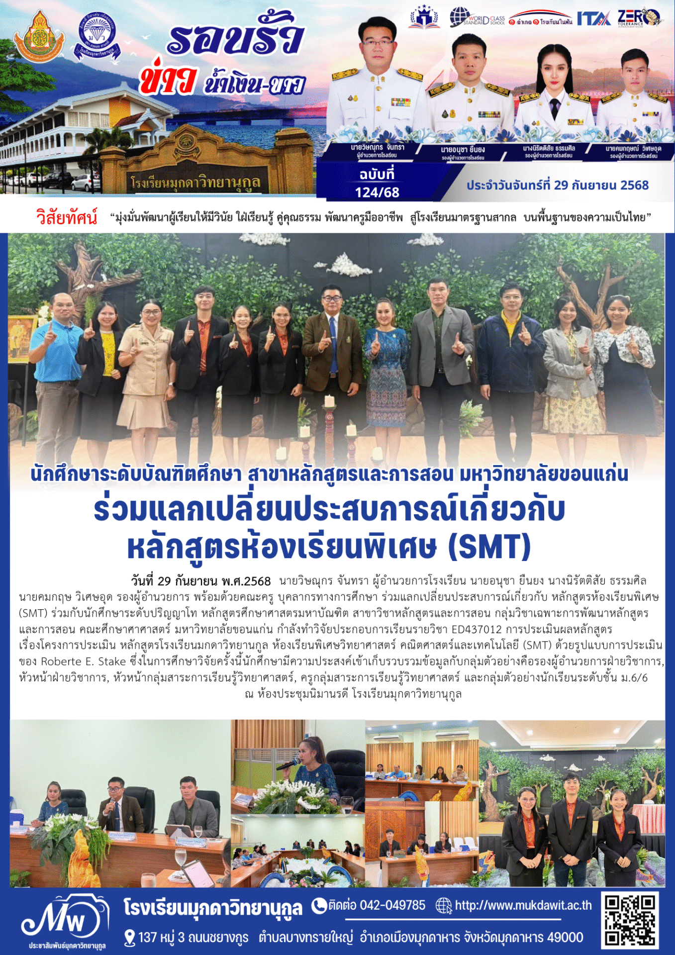 โรงเรียนมุกดาวิทยานุกูล ฉบับที่ 124 วันที่ 29 กันยายน 2568