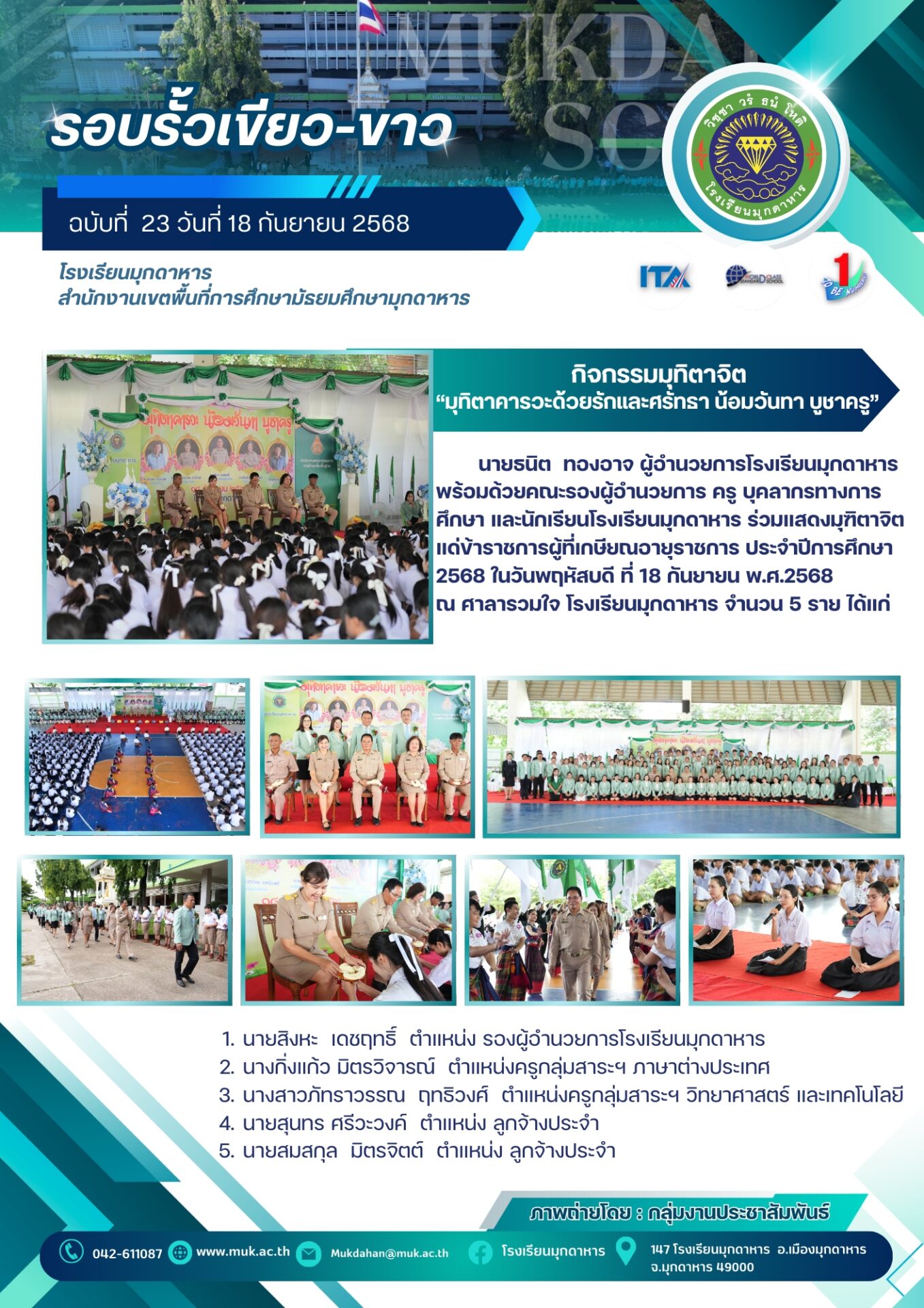 โรงเรียนมุกดาหาร ฉบับที่ 23 วันที่ 18 กันยายน 2568 / จดหมายข่าวโรงเรียนในสังกัด / By พิมพ์ธิดา อารีรักษ์