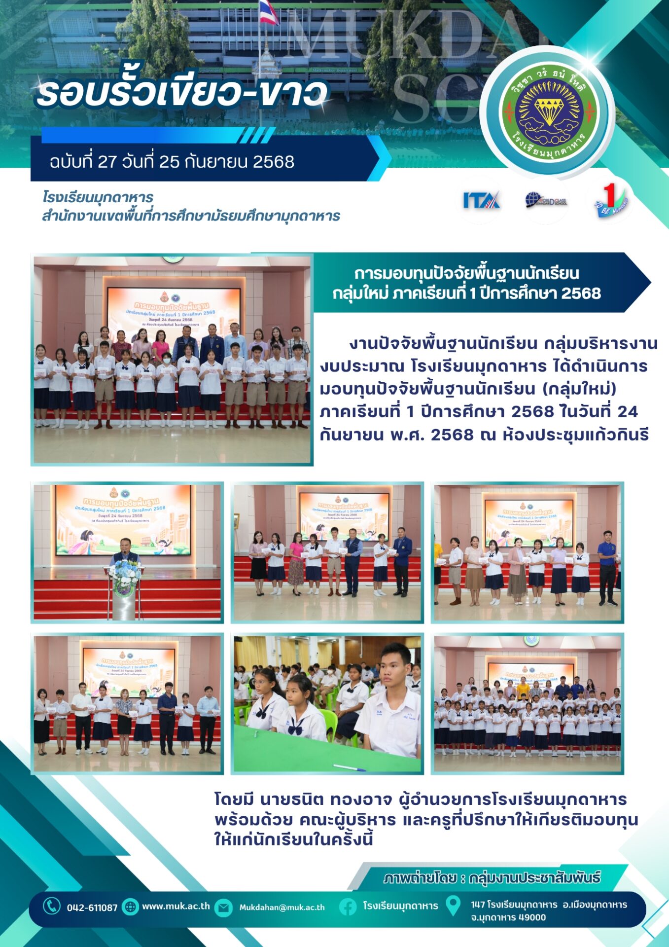 โรงเรียนมุกดาหาร ฉบับที่ 27 วันที่ 25 กันยายน 2568 / จดหมายข่าวโรงเรียนในสังกัด / By พิมพ์ธิดา อารีรักษ์