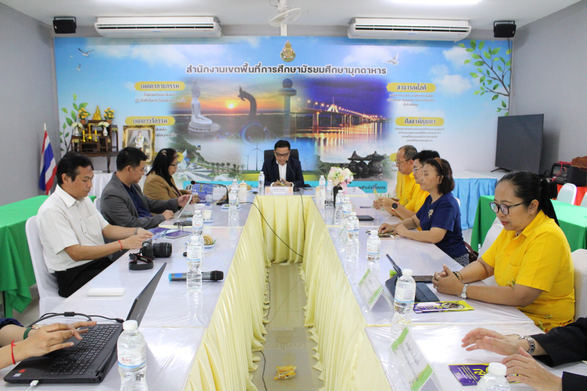 นายโชคชัย จันทะโสตถิ์ รองผู้อำนวยการสำนักงานเขตพื้นที่การศึกษามัธยมศึกษามุกดาหาร รักษาราชการแทนผู้อำนวยการสำนักงานเขตพื้นที่การศึกษามัธยมศึกษามุกดาหาร ผู้อำนวยการกลุ่ม/หน่วย และบุคลากรที่เกี่ยวข้อง เข้าร่วมต้อนรับคณาจารย์จากมหาวิทยาลัยอุบลราชธานี นำโดย นางวิชชุดา มงคล ผู้อำนวยการกองบริการการศึกษา ที่มาชี้แจงแนวทางการคัดเลือกบุคคลเข้าศึกษาในมหาวิทยาลัยอุบลราชธานี ด้วยวิธีรับตรงรอบ Portfolio โครงการเด็กดีมีที่เรียนตามความร่วมมือกับสำนักงานเขตพื้นที่การศึกษามัธยมศึกษา ประจำปีการศึกษา 2569 ณ ห้องประชุมขวัญมุกดา สพม.มุกดาหาร