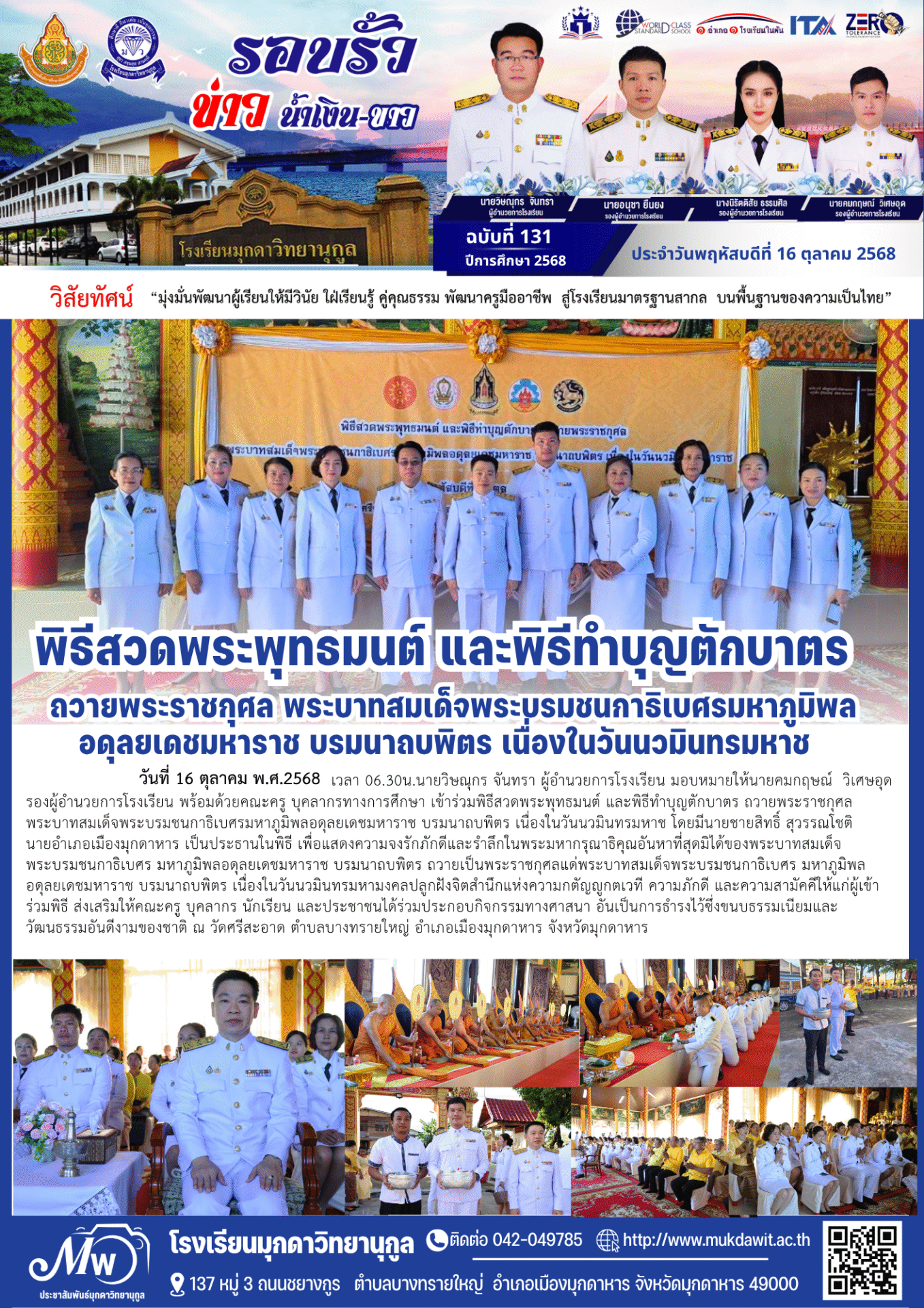 โรงเรียนมุกดาวิทยานุกูล ฉบับที่ 131 วันที่ 16 ตุลาคม 2568 / จดหมายข่าวโรงเรียนในสังกัด / By พิมพ์ธิดา อารีรักษ์
