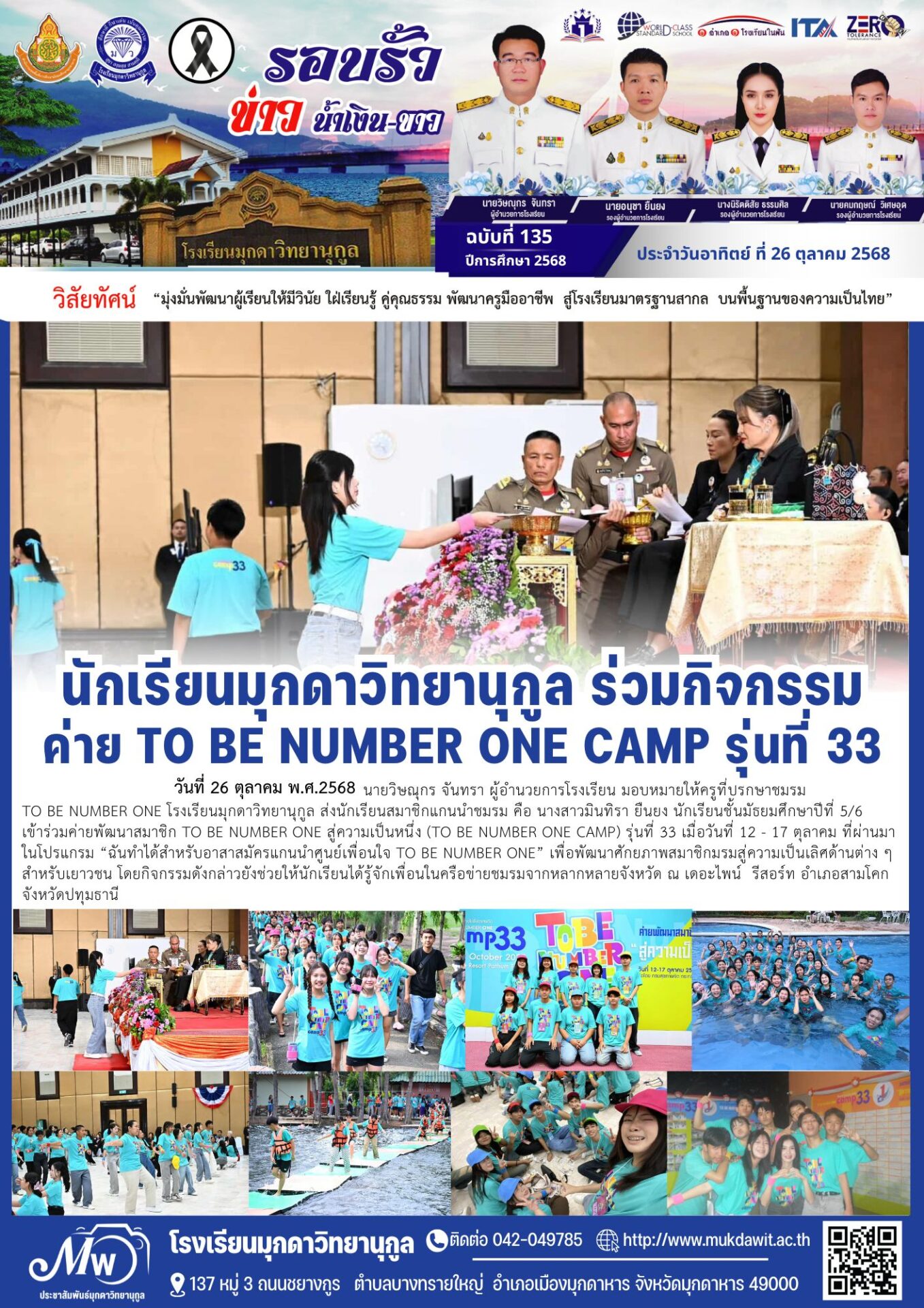 โรงเรียนมุกดาวิทยานุกูล ฉบับที่ 135 วันที่ 26 ตุลาคม 2568 / จดหมายข่าวโรงเรียนในสังกัด / By พิมพ์ธิดา อารีรักษ์