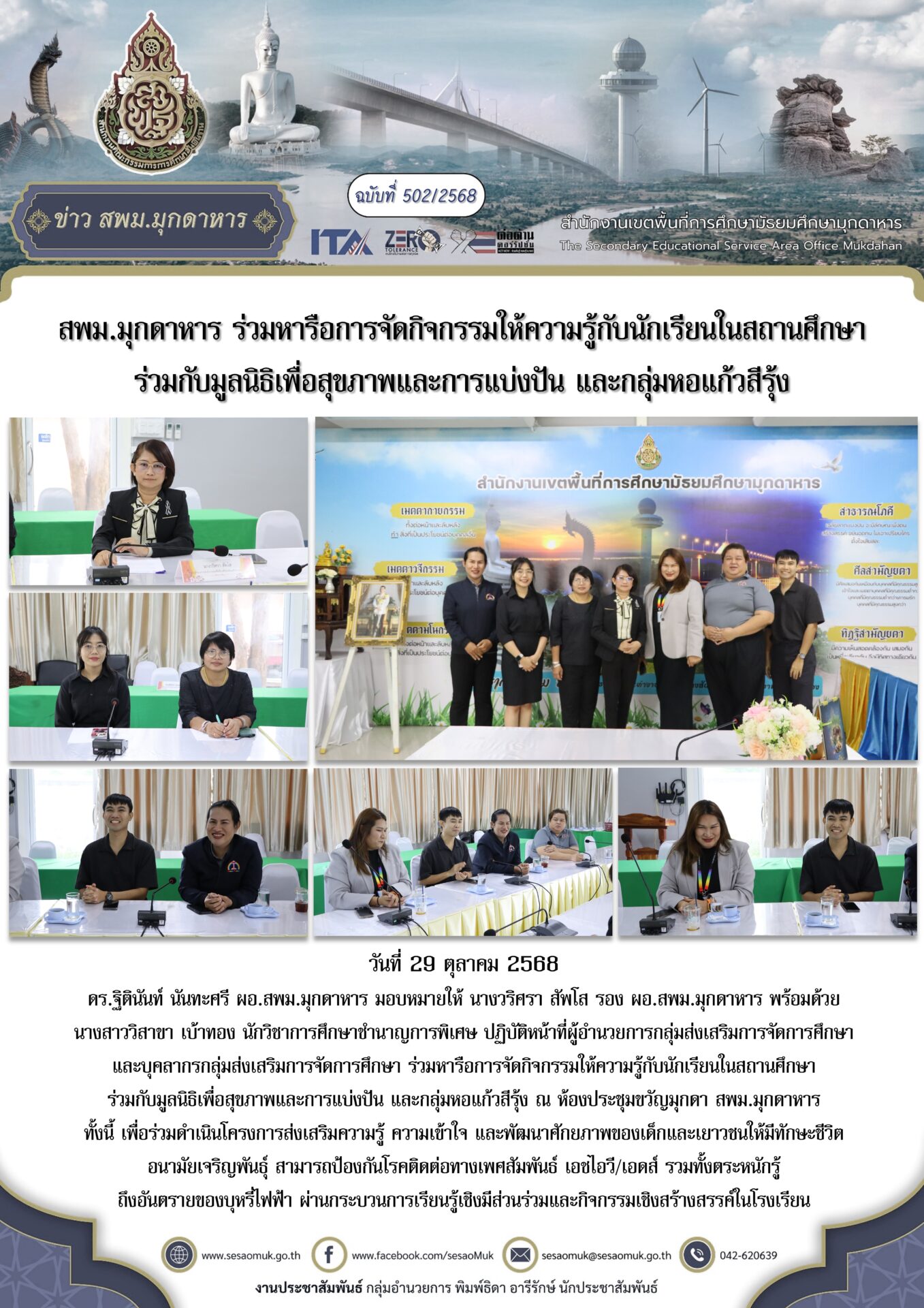 โรงเรียนมุกดาหาร ฉบับที่ 8 วันที่ 19 มกราคม 2567