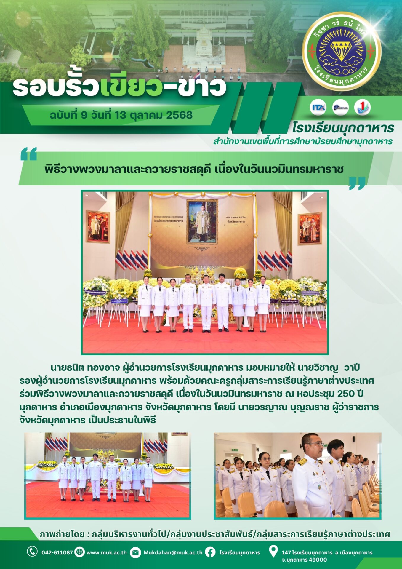 โรงเรียนมุกดาหาร ฉบับที่ 9 วันที่ 13 ตุลาคม 2568 / จดหมายข่าวโรงเรียนในสังกัด / By พิมพ์ธิดา อารีรักษ์