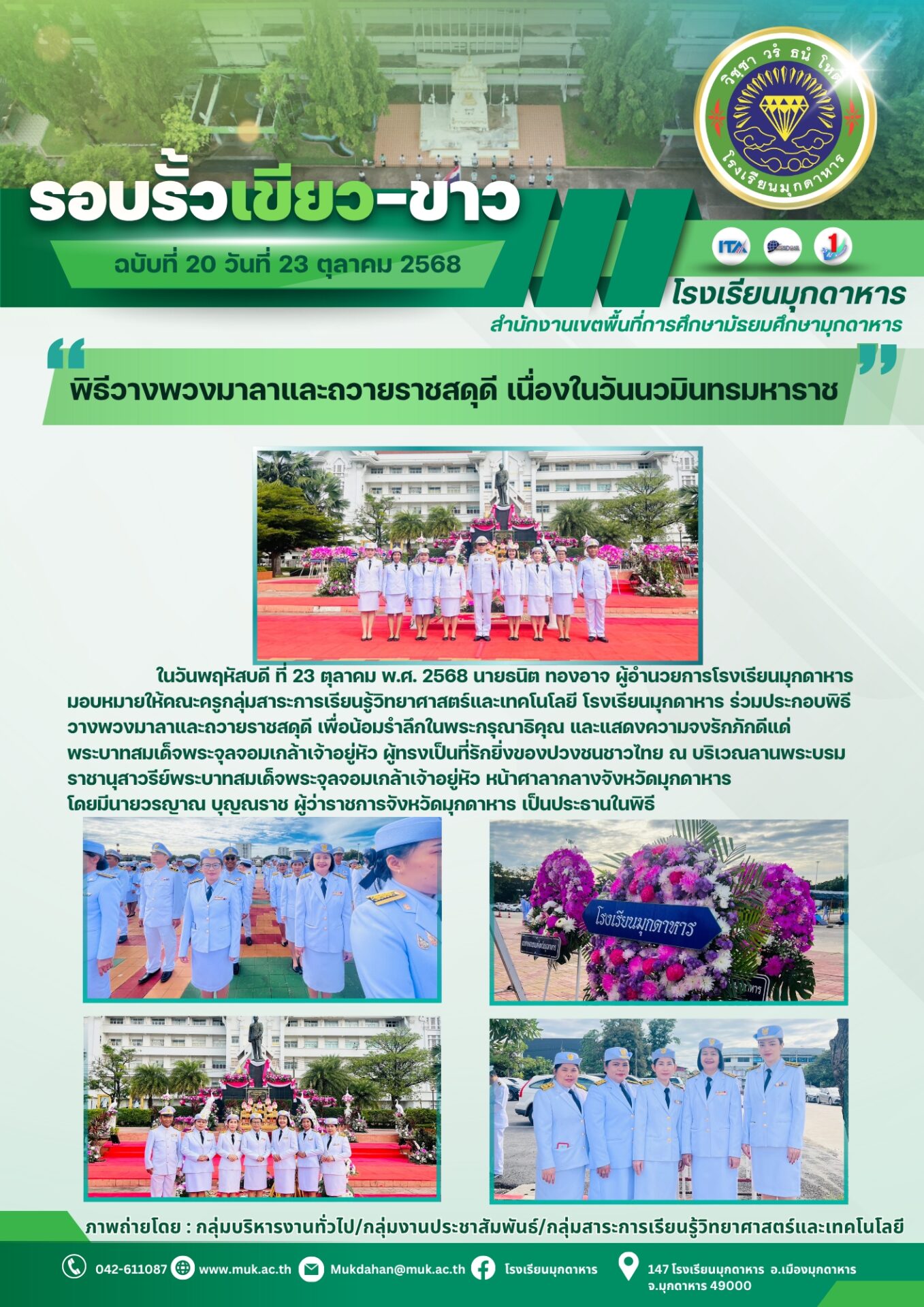 โรงเรียนมุกดาหาร ฉบับที่ 20 วันที่ 23 ตุลาคม 2568 / จดหมายข่าวโรงเรียนในสังกัด / By พิมพ์ธิดา อารีรักษ์