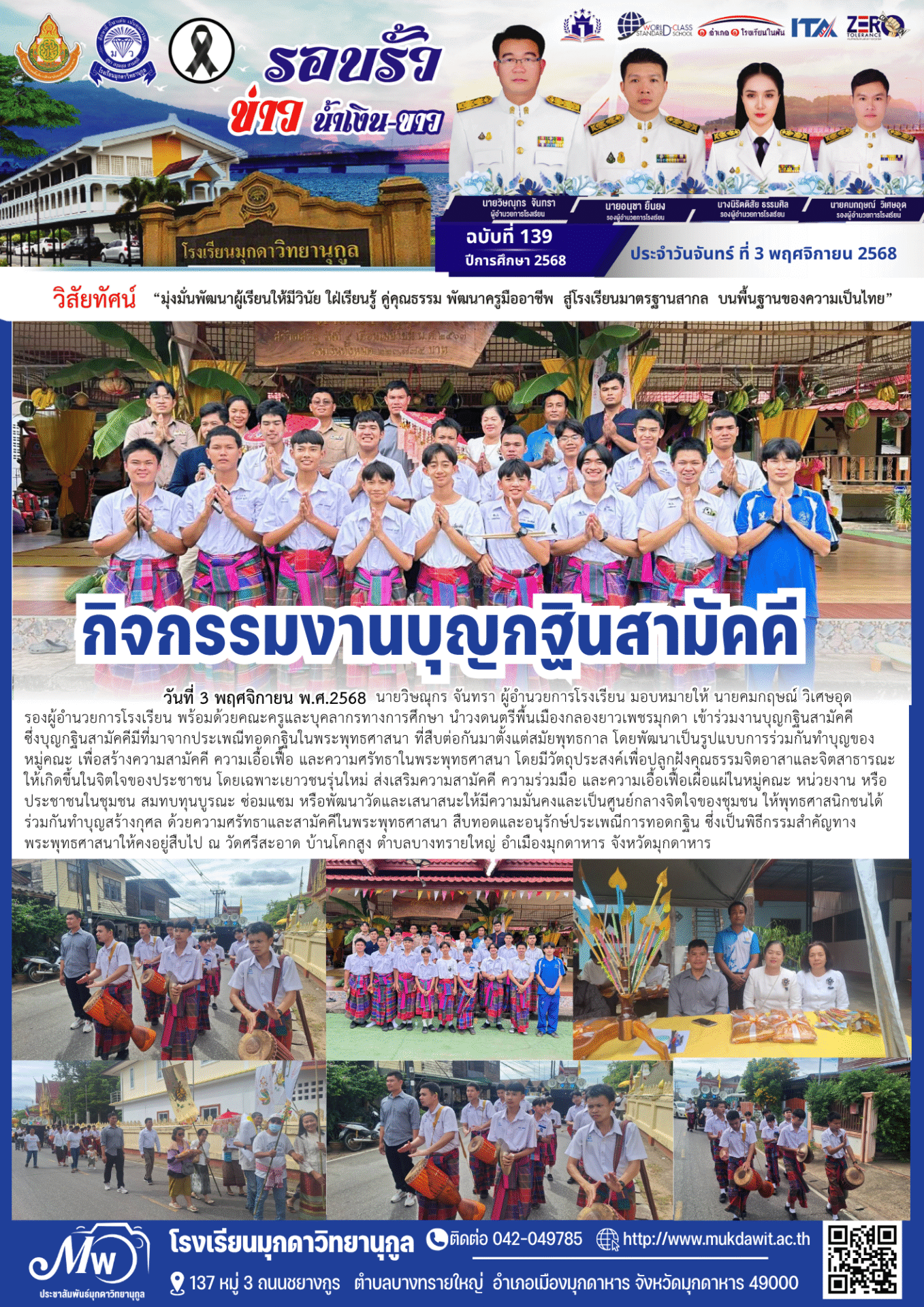 โรงเรียนมุกดาวิทยานุกูล ฉบับที่ 139 วันที่ 3 พฤศจิกายน 2568