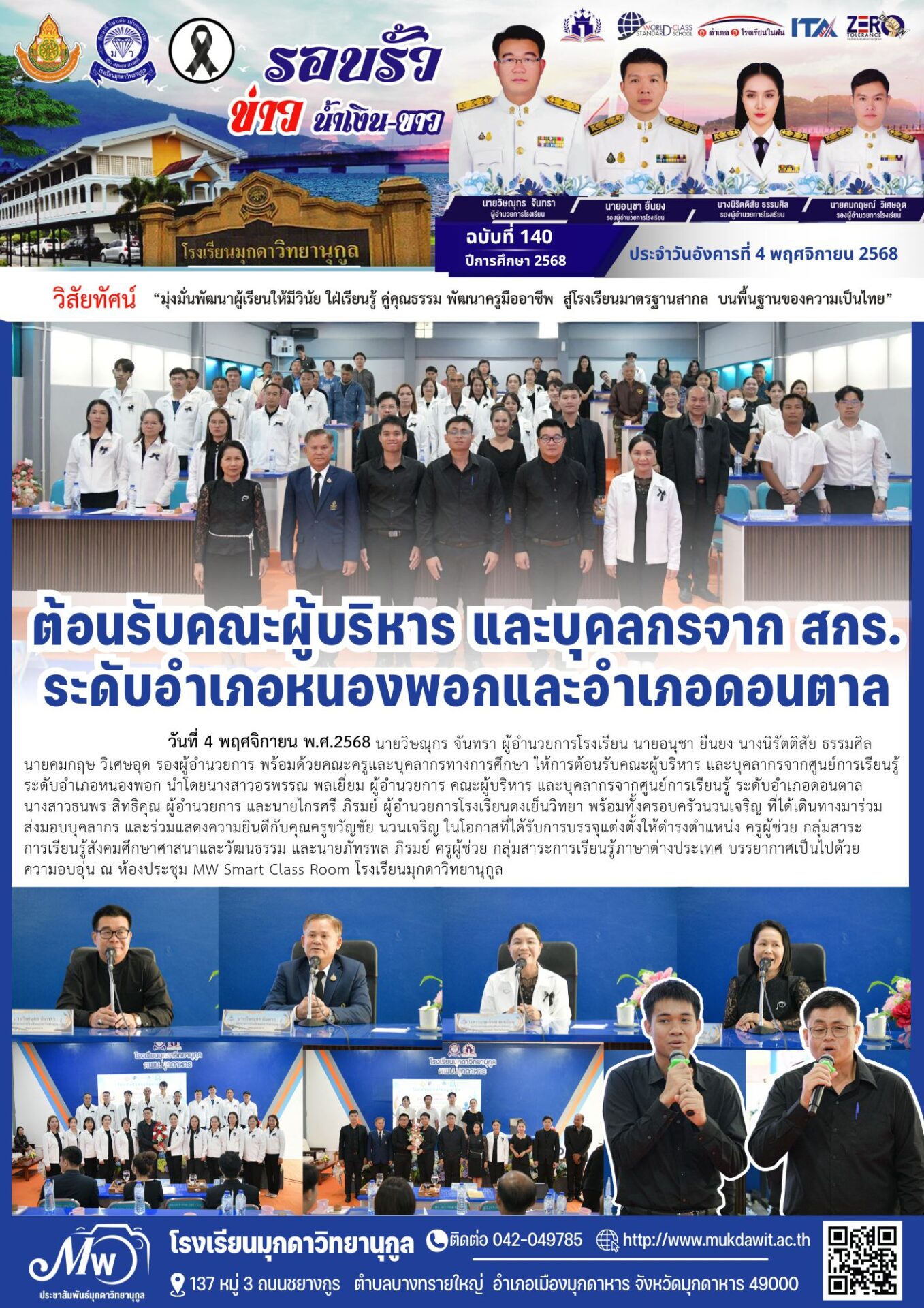 โรงเรียนมุกดาวิทยานุกูล ฉบับที่ 140 วันที่ 4 พฤศจิกายน 2568 / จดหมายข่าวโรงเรียนในสังกัด / By พิมพ์ธิดา อารีรักษ์