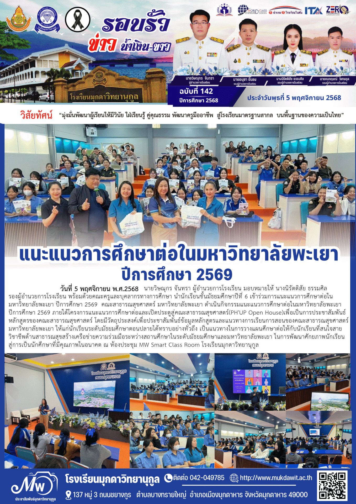 โรงเรียนมุกดาวิทยานุกูล ฉบับที่ 142 วันที่ 5 พฤศจิกายน 2568 / จดหมายข่าวโรงเรียนในสังกัด / By พิมพ์ธิดา อารีรักษ์