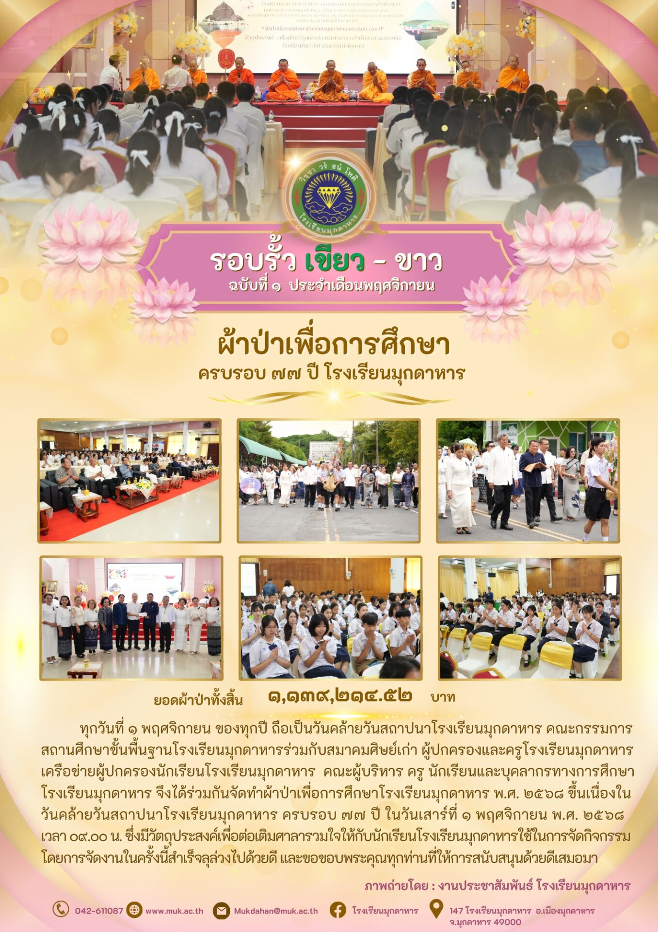 โรงเรียนมุกดาหาร ฉบับที่ 1 วันที่ 1 พฤศจิกายน 2568