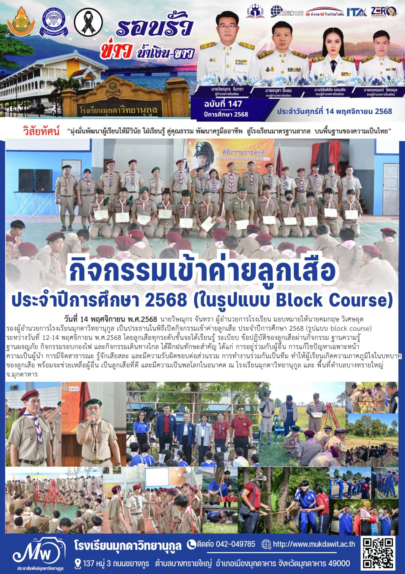 โรงเรียนมุกดาวิทยานุกูล ฉบับที่ 147 วันที่ 14 พฤศจิกายน 2568 / จดหมายข่าวโรงเรียนในสังกัด / By พิมพ์ธิดา อารีรักษ์