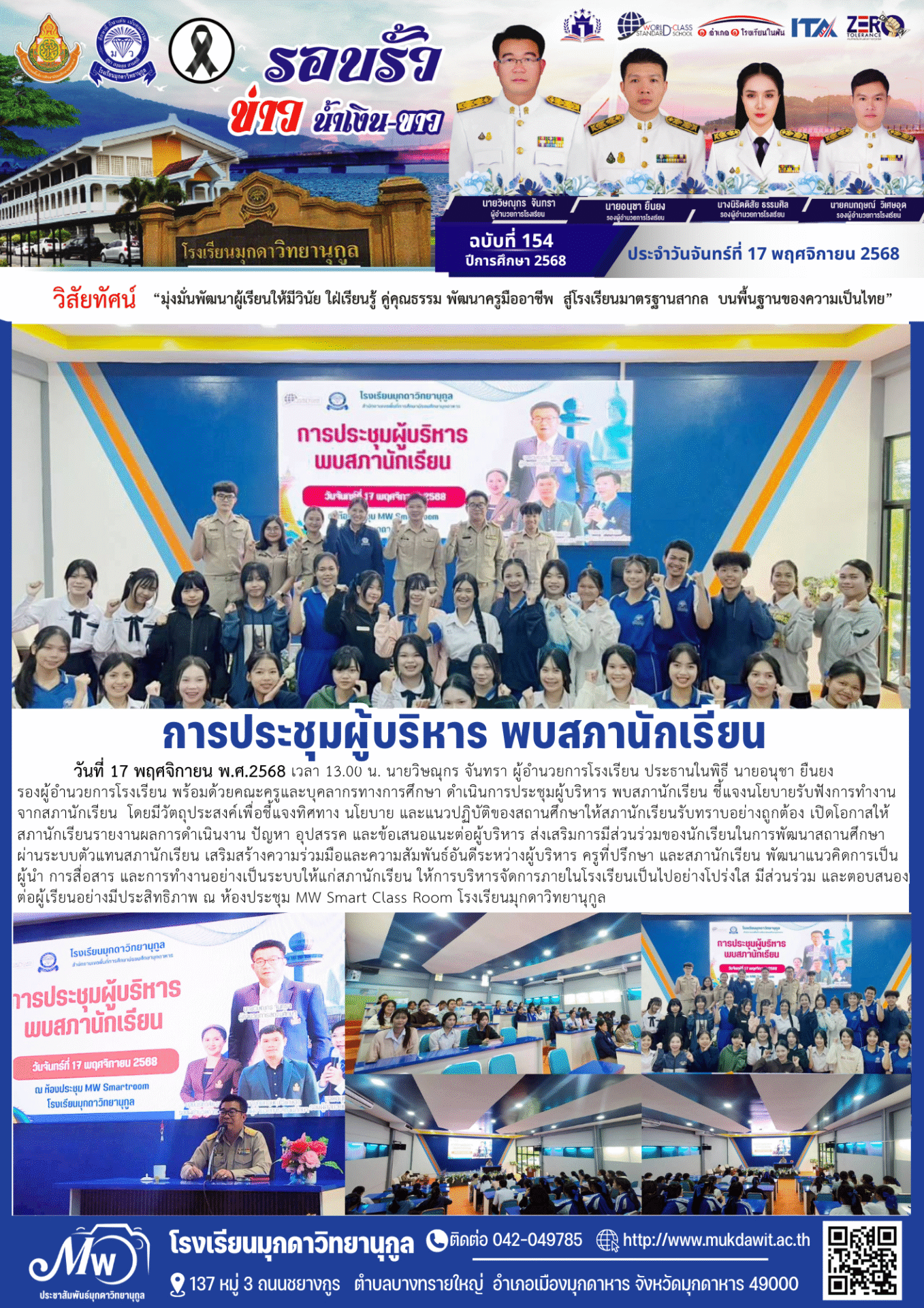 โรงเรียนมุกดาวิทยานุกูล ฉบับที่ 154 วันที่ 17 พฤศจิกายน 2568