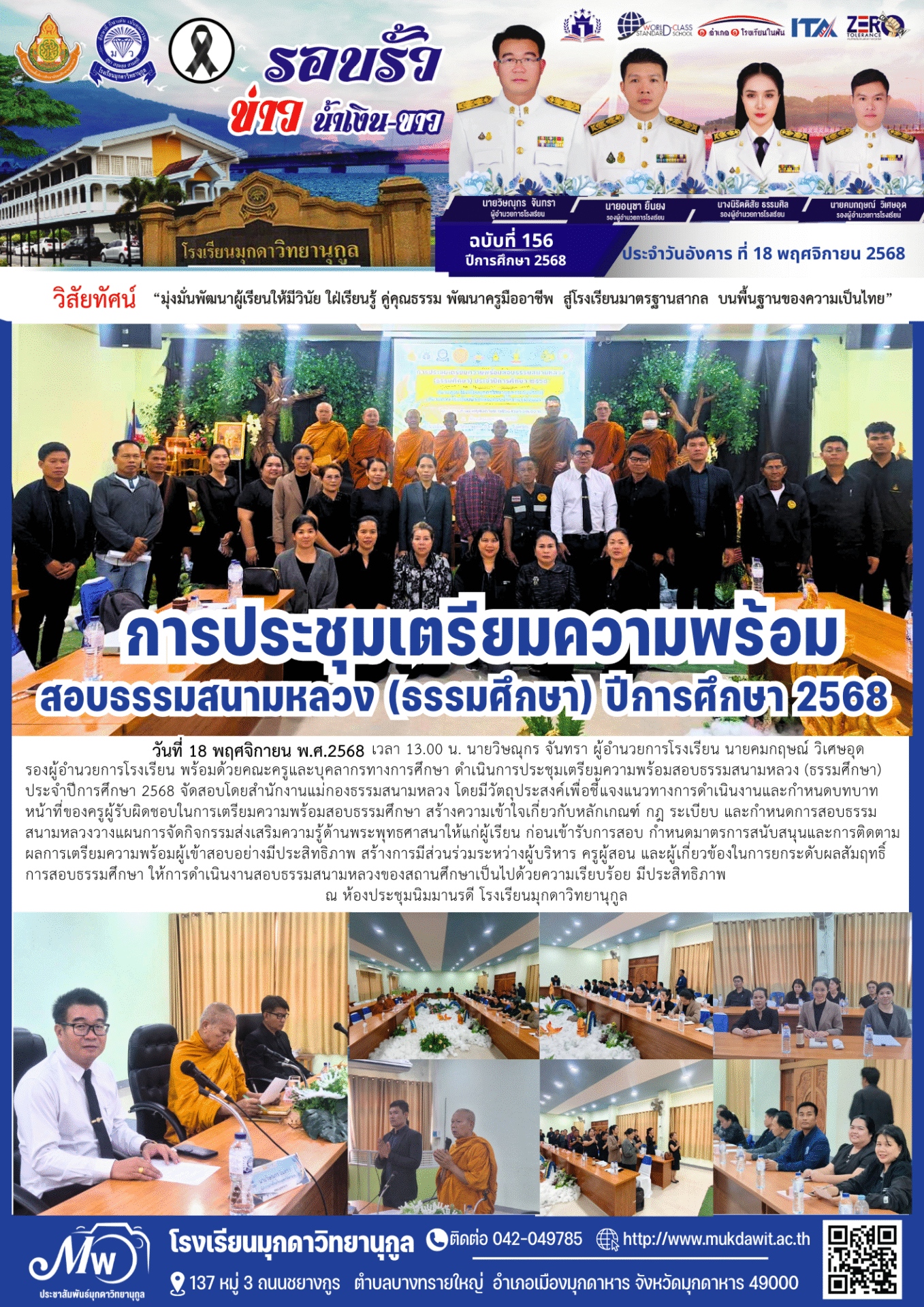 โรงเรียนมุกดาวิทยานุกูล ฉบับที่ 156 วันที่ 18 พฤศจิกายน 2568 / จดหมายข่าวโรงเรียนในสังกัด / By พิมพ์ธิดา อารีรักษ์