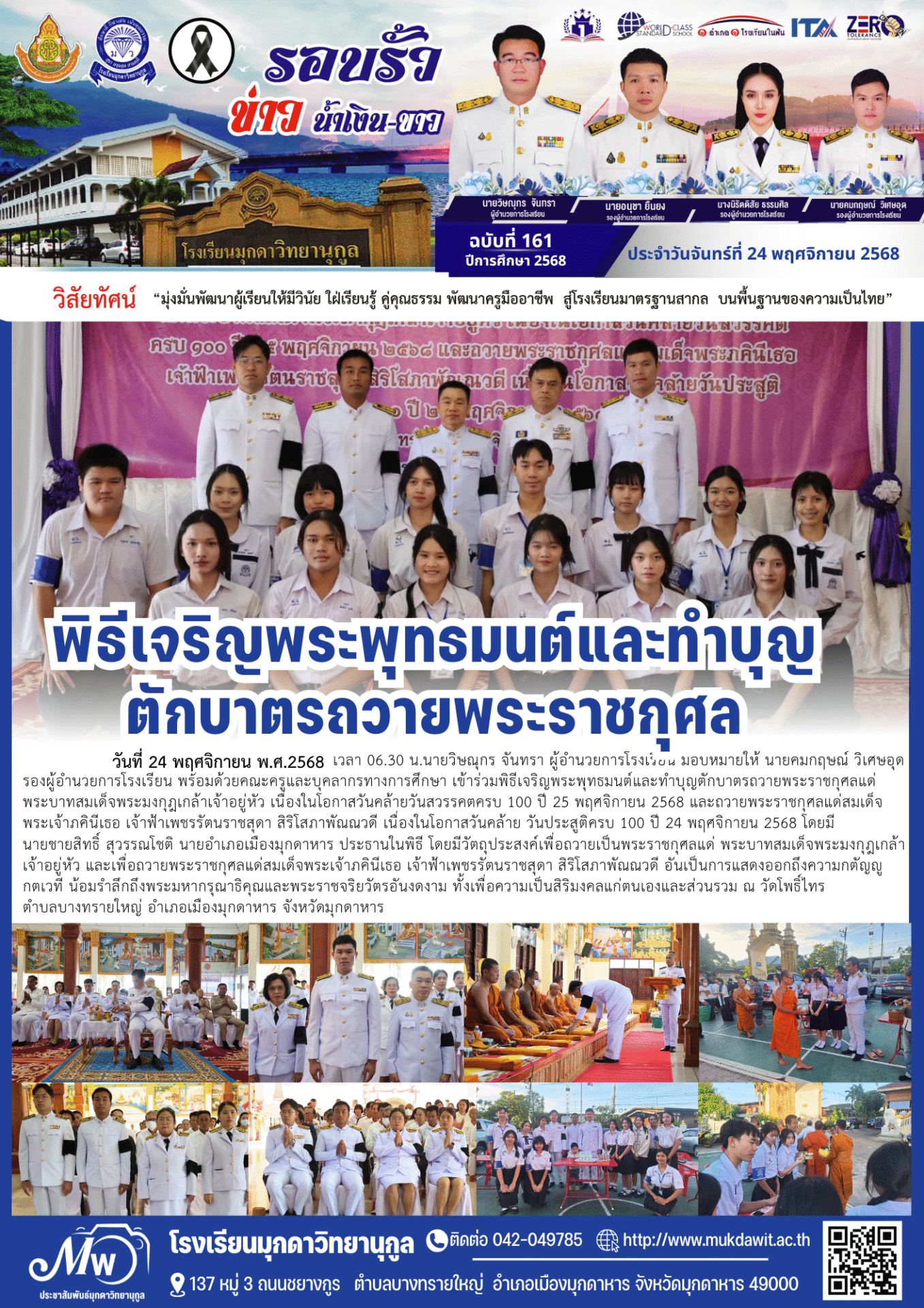โรงเรียนมุกดาวิทยานุกูล ฉบับที่ 161 วันที่ 24 พฤศจิกายน 2568 / จดหมายข่าวโรงเรียนในสังกัด / By พิมพ์ธิดา อารีรักษ์
