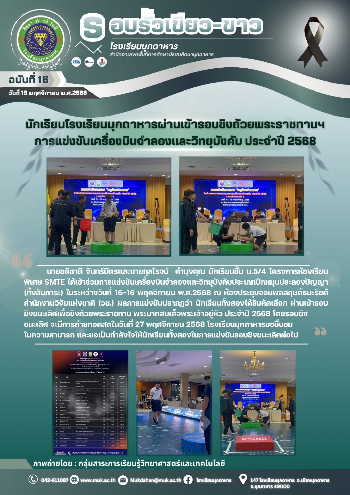 โรงเรียนมุกดาหาร ฉบับที่ 16 วันที่ 15 พฤศจิกายน 2568 / จดหมายข่าวโรงเรียนในสังกัด / By พิมพ์ธิดา อารีรักษ์