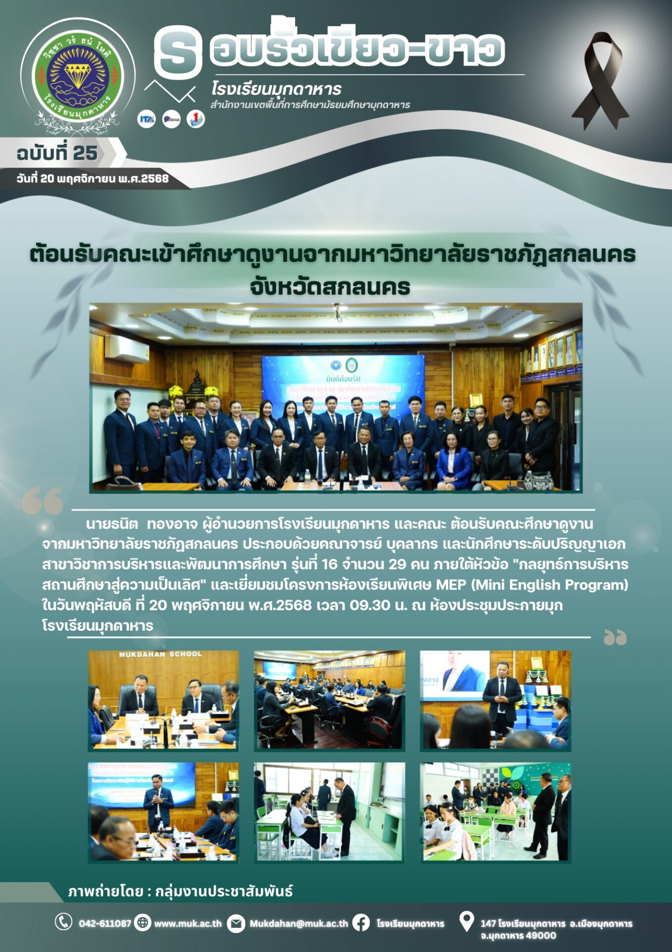 โรงเรียนมุกดาหาร ฉบับที่ 25 วันที่ 20 พฤศจิกายน 2568 / จดหมายข่าวโรงเรียนในสังกัด / By พิมพ์ธิดา อารีรักษ์