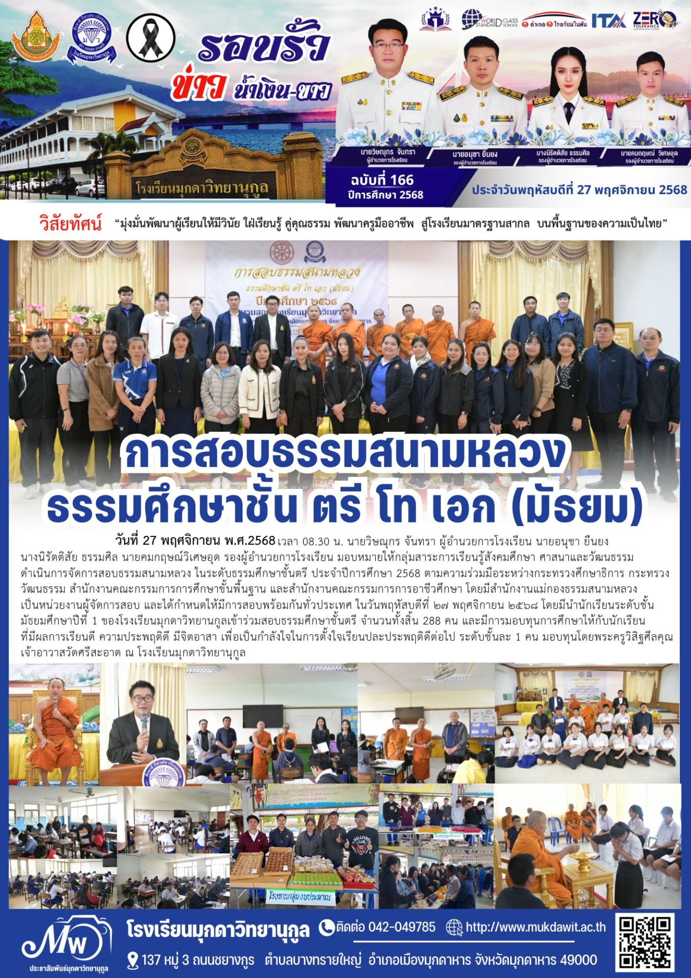โรงเรียนมุกดาวิทยานุกูล ฉบับที่ 166 วันที่ 27 พฤศจิกายน 2568 / จดหมายข่าวโรงเรียนในสังกัด / By พิมพ์ธิดา อารีรักษ์