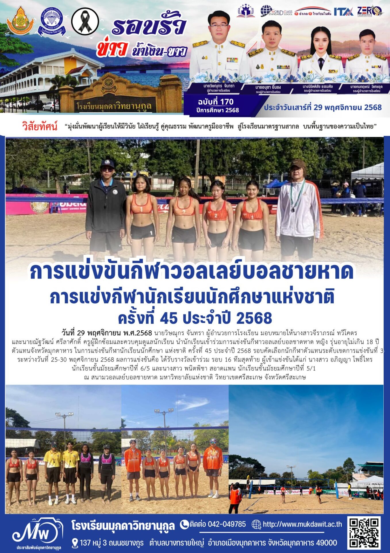 โรงเรียนมุกดาวิทยานุกูล ฉบับที่ 170 วันที่ 29 พฤศจิกายน 2568 / จดหมายข่าวโรงเรียนในสังกัด / By พิมพ์ธิดา อารีรักษ์