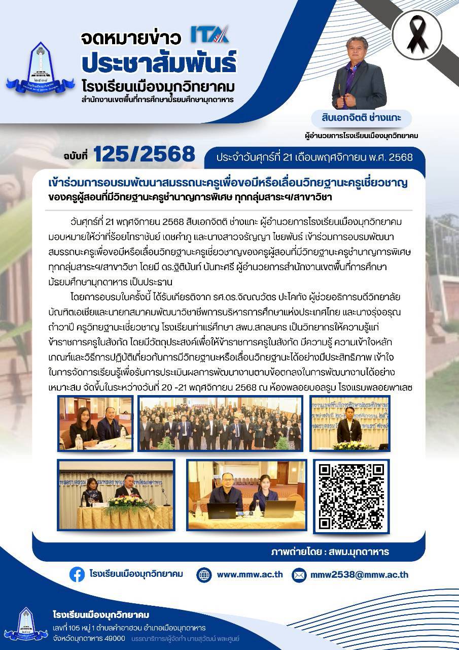 โรงเรียนเมืองมุกวิทยาคม ฉบับที่ 125 วันที่ 21 พฤศจิกายน 2568 / จดหมายข่าวโรงเรียนในสังกัด / By พิมพ์ธิดา อารีรักษ์