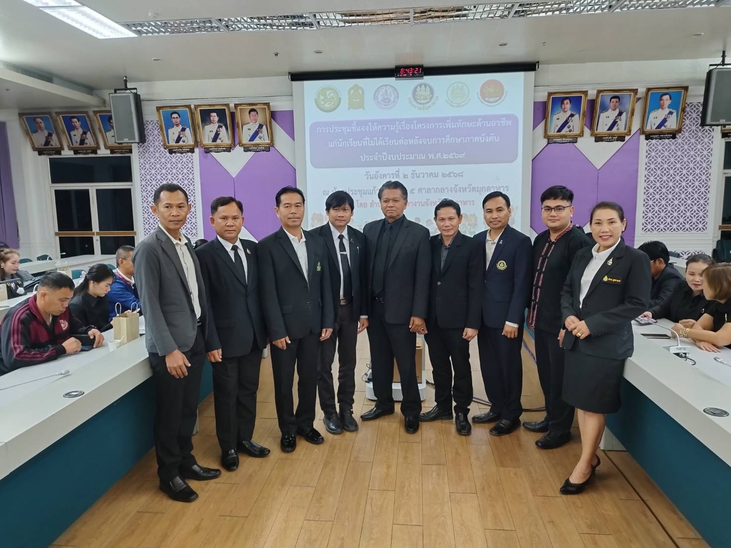ดร.ฐิตินันท์ นันทะศรี ผอ.สพม.มุกดาหาร มอบหมายให้ นางสาวกัญจนพร ดอนหล้า ศึกษานิเทศก์ชำนาญการพิเศษ เข้าร่วมการประชุมเพื่อชี้แจงให้ความรู้เรื่อง โครงการเพิ่มทักษะด้านอาชีพแก่นักเรียนที่ไม่ได้เรียนต่อหลังจบการศึกษาภาคบังคับ ประจำปีงบประมาณ พ.ศ. 2569โดยมี นายไกร เอี่ยมจุฬา รองผู้ว่าราชการจังหวัดมุกดาหาร เป็นประธานการประชุม ทั้งนี้ การประชุมมีวัตถุประสงค์เพื่อชี้แจงกรอบแนวคิด ขั้นตอนการดำเนินงาน และปฏิทินกิจกรรมของโครงการฯ ให้แก่กลุ่มเป้าหมาย ได้แก่ ผู้อำนวยการโรงเรียน ครูแนะแนว และบุคลากรด้านการศึกษา จำนวน 146 คน เพื่อให้ทุกหน่วยงานสามารถนำข้อมูลไปใช้วางแผนสนับสนุนผู้เรียนที่ไม่ได้ศึกษาต่อ ให้มีทักษะอาชีพและโอกาสในการประกอบอาชีพที่เหมาะสมสำนักงานเขตพื้นที่การศึกษาประถมศึกษามุกดาหาร พร้อมร่วมขับเคลื่อนโครงการดังกล่าว เพื่อสร้างโอกาสและเสริมศักยภาพให้เยาวชนก้าวสู่ตลาดแรงงานอย่างมั่นคงในอนาคตณ ห้องประชุมแก้วกินรี ชั้น 5 ศาลากลางจังหวัดมุกดาหาร