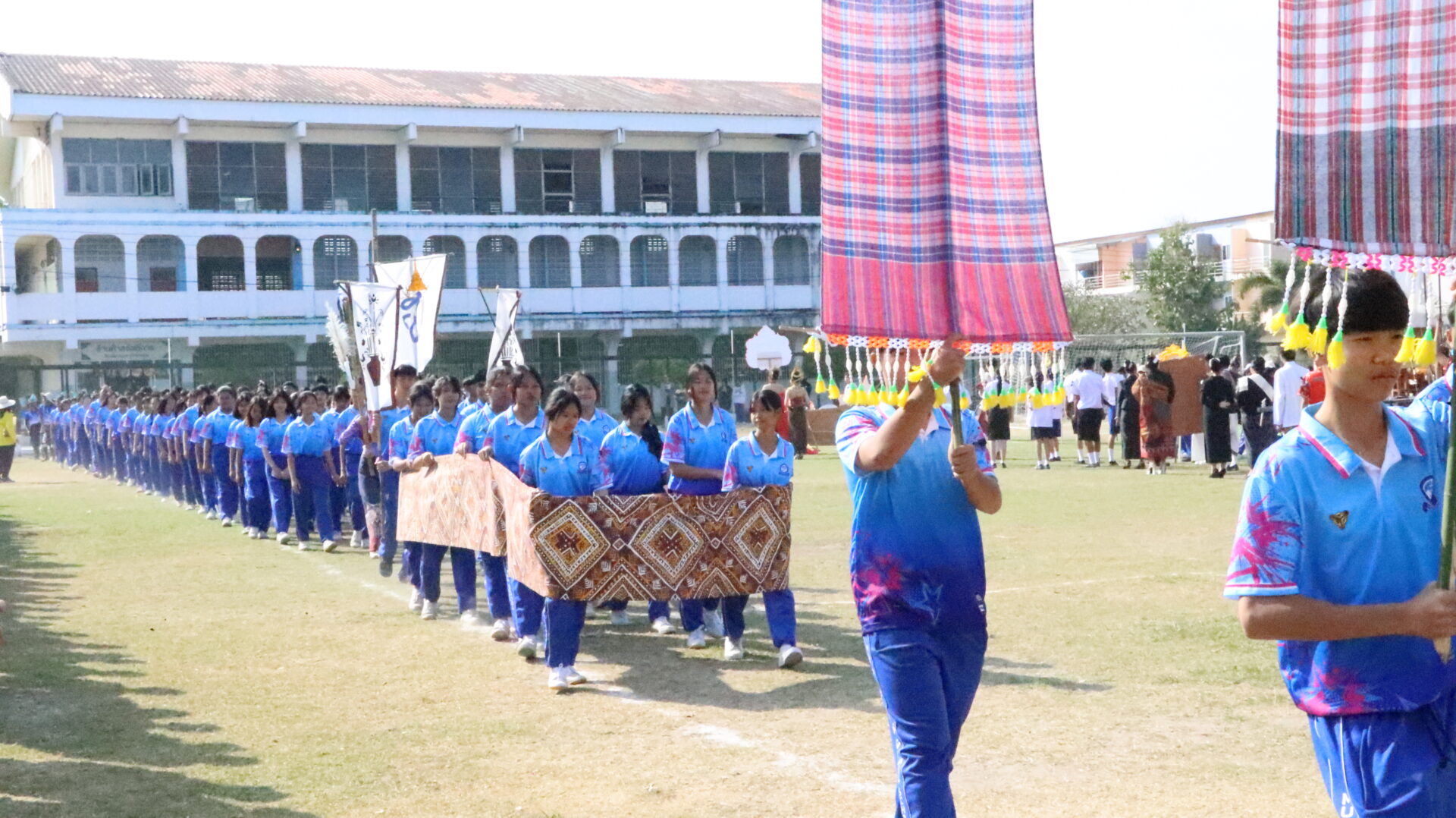 ดร.ฐิตินันท์ นันทะศรี ผู้อำนวยการสำนักงานเขตพื้นที่การศึกษามัธยมศึกษามุกดาหาร เป็นประธานในพิธีเปิดการแข่งขันกีฬาสีภายใน “พญาสัตบรรณเกมส์” ประจำปีการศึกษา 2568 ของโรงเรียนมุกดาวิทยานุกูล โดยมี นายวิษณุกร จันทรา ผู้อำนวยการโรงเรียนมุกดาวิทยานุกูล ได้กล่าวรายงานวัตถุประสงค์ของการจัดการแข่งขัน เป็นการส่งเสริมให้นักเรียนได้พัฒนาทักษะการทำงานเป็นทีม สร้างความสามัคคีภายในหมู่คณะ อีกทั้งยังเป็นเวทีให้นักเรียนเรียนรู้กติกาการอยู่ร่วมกันผ่าน “การรู้แพ้ รู้ชนะ รู้อภัย” ตลอดจนเป็นการส่งเสริมสุขภาพกายและสุขภาพจิตของผู้เรียน รวมถึงสร้างความสัมพันธ์อันดีระหว่างนักเรียน ครู และบุคลากรทางการศึกษา ณ สนามกีฬาโรงเรียนมุกดาวิทยานุกูล