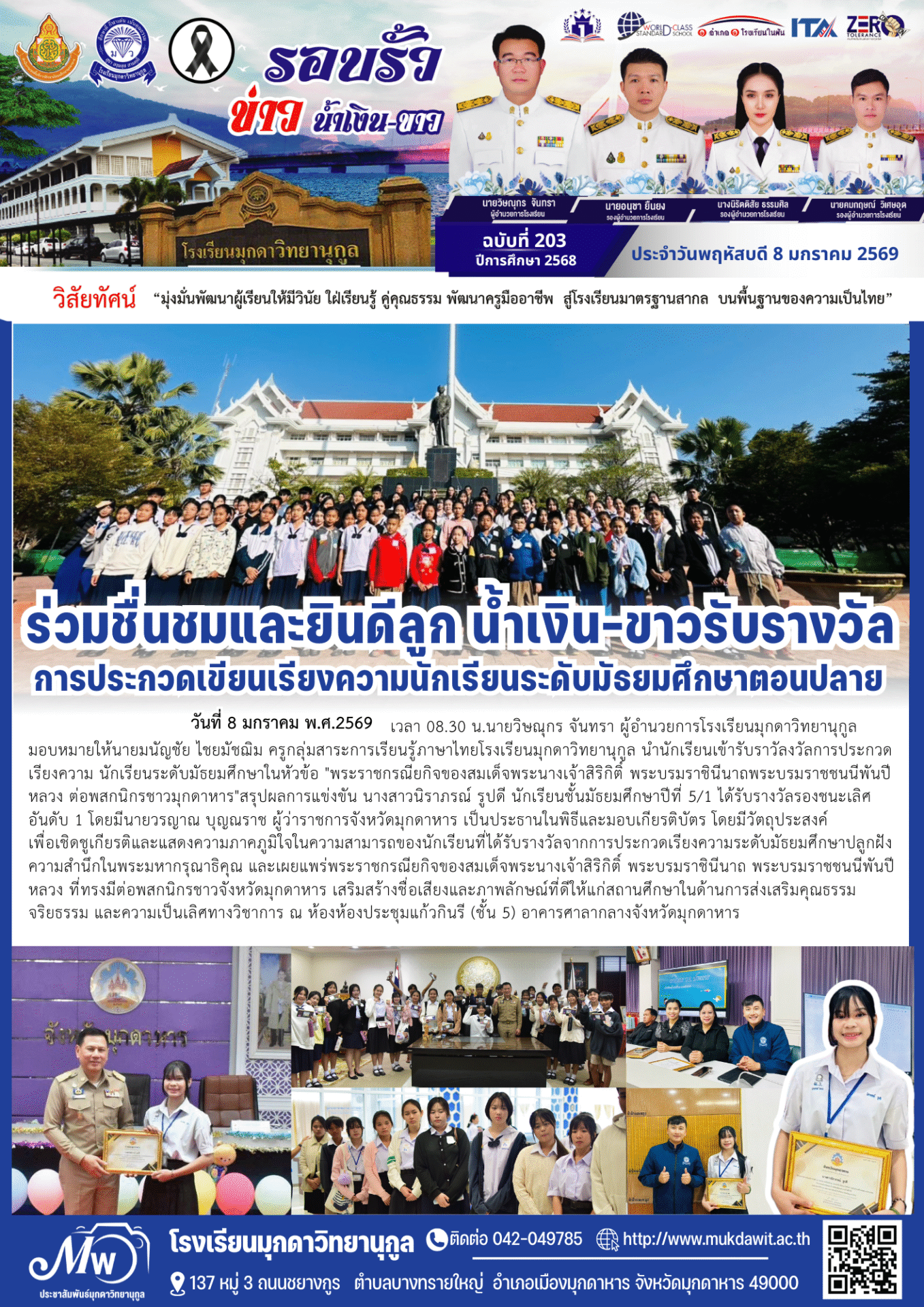 โรงเรียนมุกดาวิทยานุกูล ฉบับที่ 203 วันที่ 8 มกราคม 2569