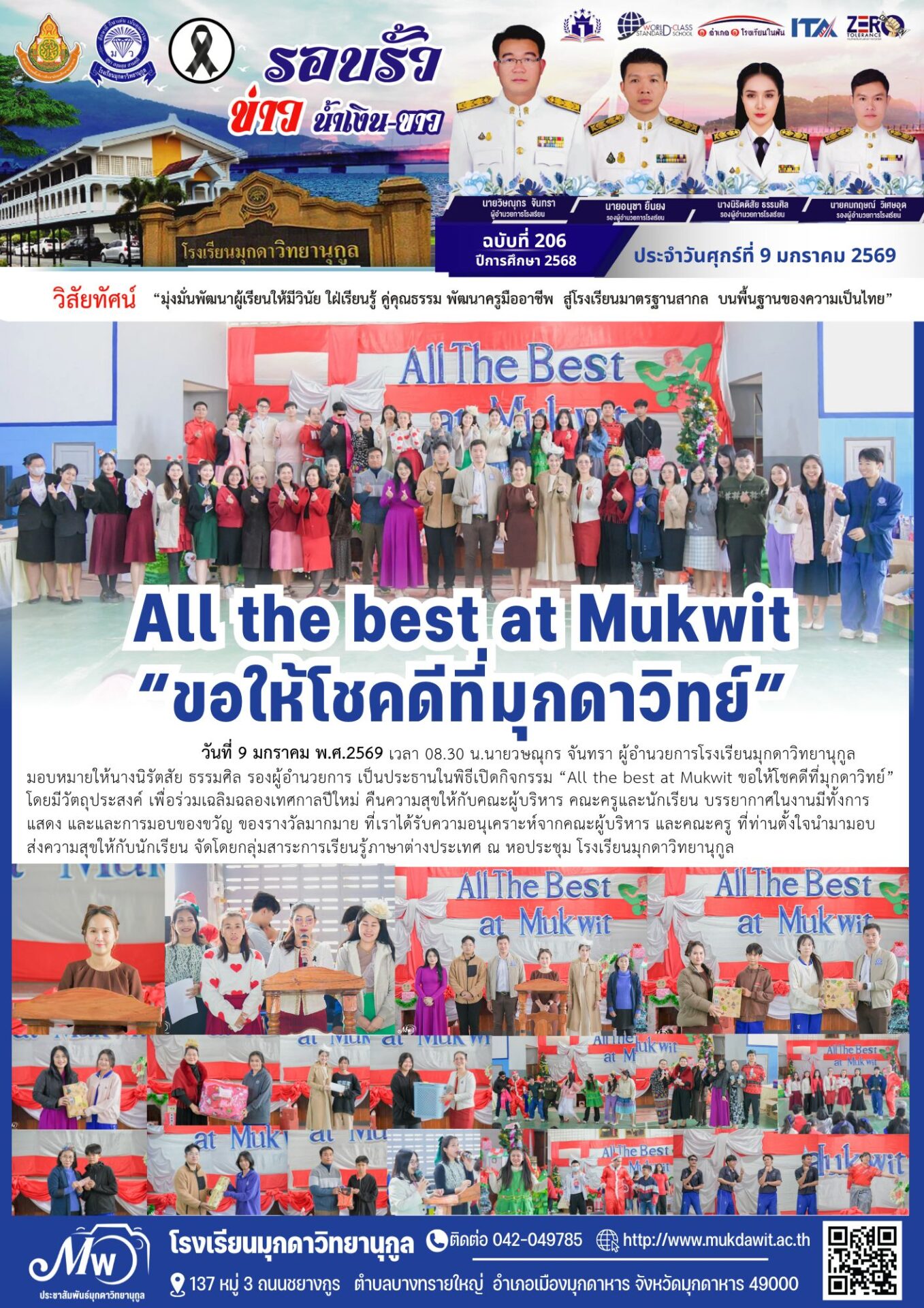 โรงเรียนมุกดาวิทยานุกูล ฉบับที่ 206 วันที่ 9 มกราคม 2569 / จดหมายข่าวโรงเรียนในสังกัด / By พิมพ์ธิดา อารีรักษ์
