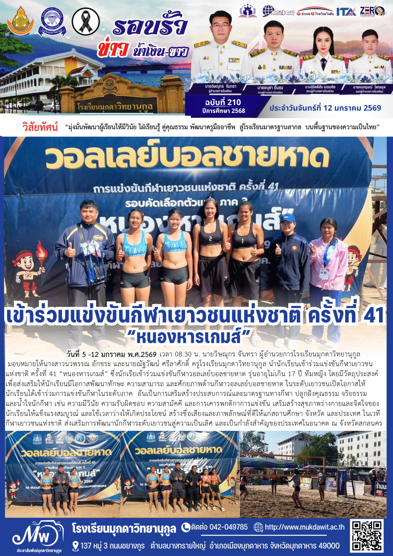 โรงเรียนมุกดาวิทยานุกูล ฉบับที่ 210 วันที่ 12 มกราคม 2569 / จดหมายข่าวโรงเรียนในสังกัด / By พิมพ์ธิดา อารีรักษ์