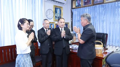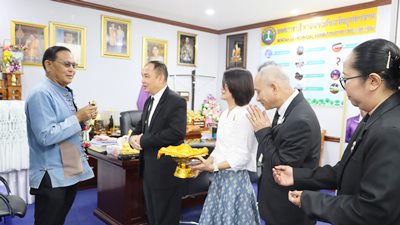 ดร.พลชัย ชุมปัญญา ผู้อำนวยการสำนักงานเขตพื้นที่การศึกษามัธยมศึกษามุกดาหาร พร้อมด้วย นางวริศรา สัพโส และนายวิทยา วังคะฮาต รองผู้อำนวยการสำนักงานเขตพื้นที่การศึกษามัธยมศึกษามุกดาหาร และคณะ เข้าอวยพรและขอพรจาก นายวีระพงษ์ ทองผา นายกองค์การบริหารส่วนจังหวัดมุกดาหาร และนายโสภณ แก่นงาม ประธานกรรมการดำเนินงานสหกรณ์ออมทรัพย์ครูมุกดาหาร จำกัด เพื่อความเป็นสิริมงคลและแสดงความเคารพ เนื่องในวาระขึ้นปีใหม่ ประจำปี พ.ศ. 2569 ณ องค์การบริหารส่วนจังหวัดมุกดาหาร และสหกรณ์ออมทรัพย์ครูมุกดาหาร จำกัด