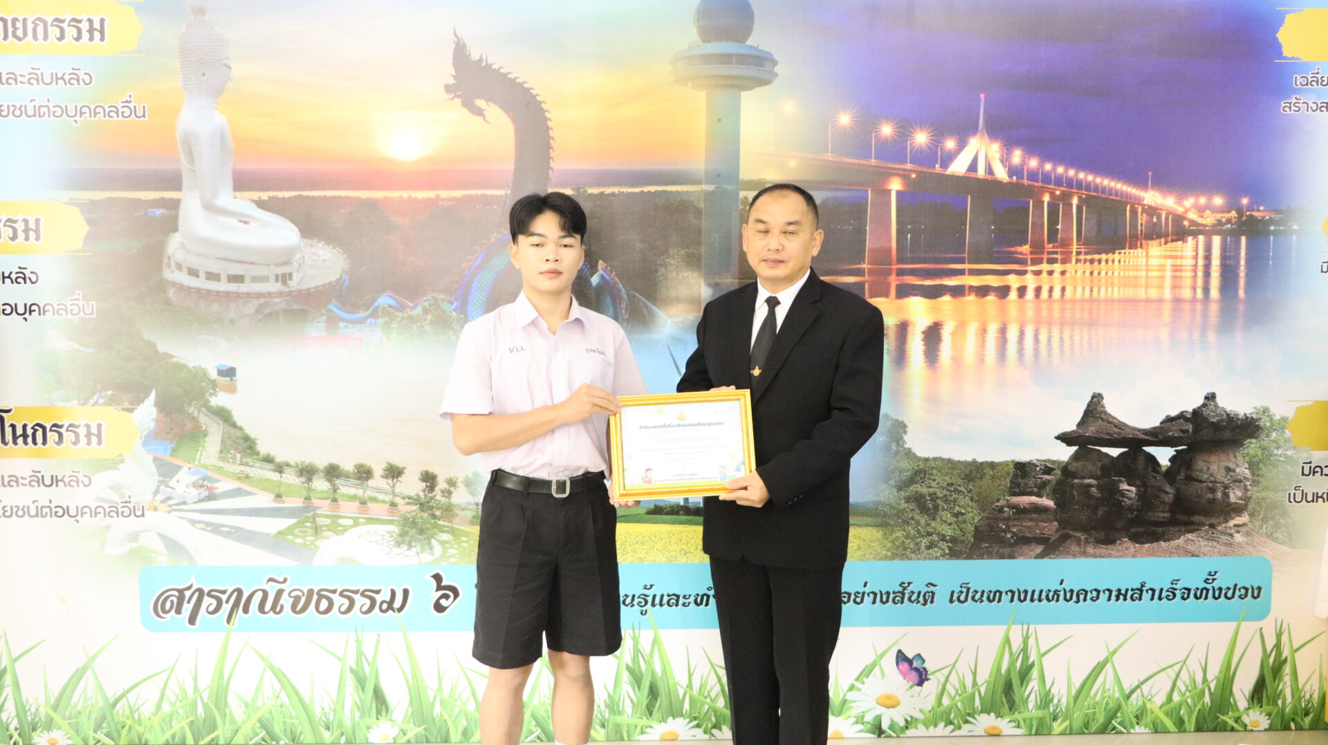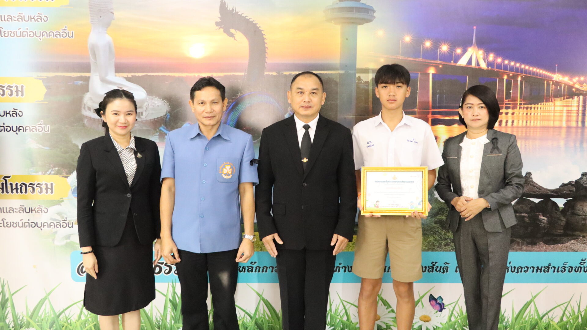 ดร.พลชัย ชุมปัญญา ผอ.สพม.มุกดาหาร เป็นประธานในพิธีมอบเกียรติบัตรการยกย่องเป็นเด็กดีเด่น เนื่องในวันเด็กแห่งชาติ ประจำปี พ.ศ. 2569 โดยมี นางวริศรา สัพโส รอง ผอ.สพม.มุกดาหาร เป็นผู้กล่าวรายงาน พร้อมด้วย นางสาววิสาขา เบ้าทอง นักวิชาการศึกษาชำนาญการพิเศษ ปฏิบัติหน้าที่ผู้อำนวยการกลุ่มส่งเสริมการจัดการศึกษา และเจ้าหน้าที่กลุ่มส่งเสริมการจัดการศึกษา เข้าร่วมพิธีในการนี้ มีนักเรียนจากโรงเรียนในสังกัดสำนักงานเขตพื้นที่การศึกษามัธยมศึกษามุกดาหารส่งผลงานเข้าร่วมและผ่านการคัดเลือก จำนวน 24 คน เข้ารับเกียรติบัตร เพื่อเป็นการยกย่องเชิดชูเกียรติและสร้างขวัญกำลังใจให้แก่นักเรียนที่ประพฤติดี มีคุณธรรม และเป็นแบบอย่างที่ดีแก่สังคม ณ ห้องประชุมขวัญมุกดา สำนักงานเขตพื้นที่การศึกษามัธยมศึกษามุกดาหาร