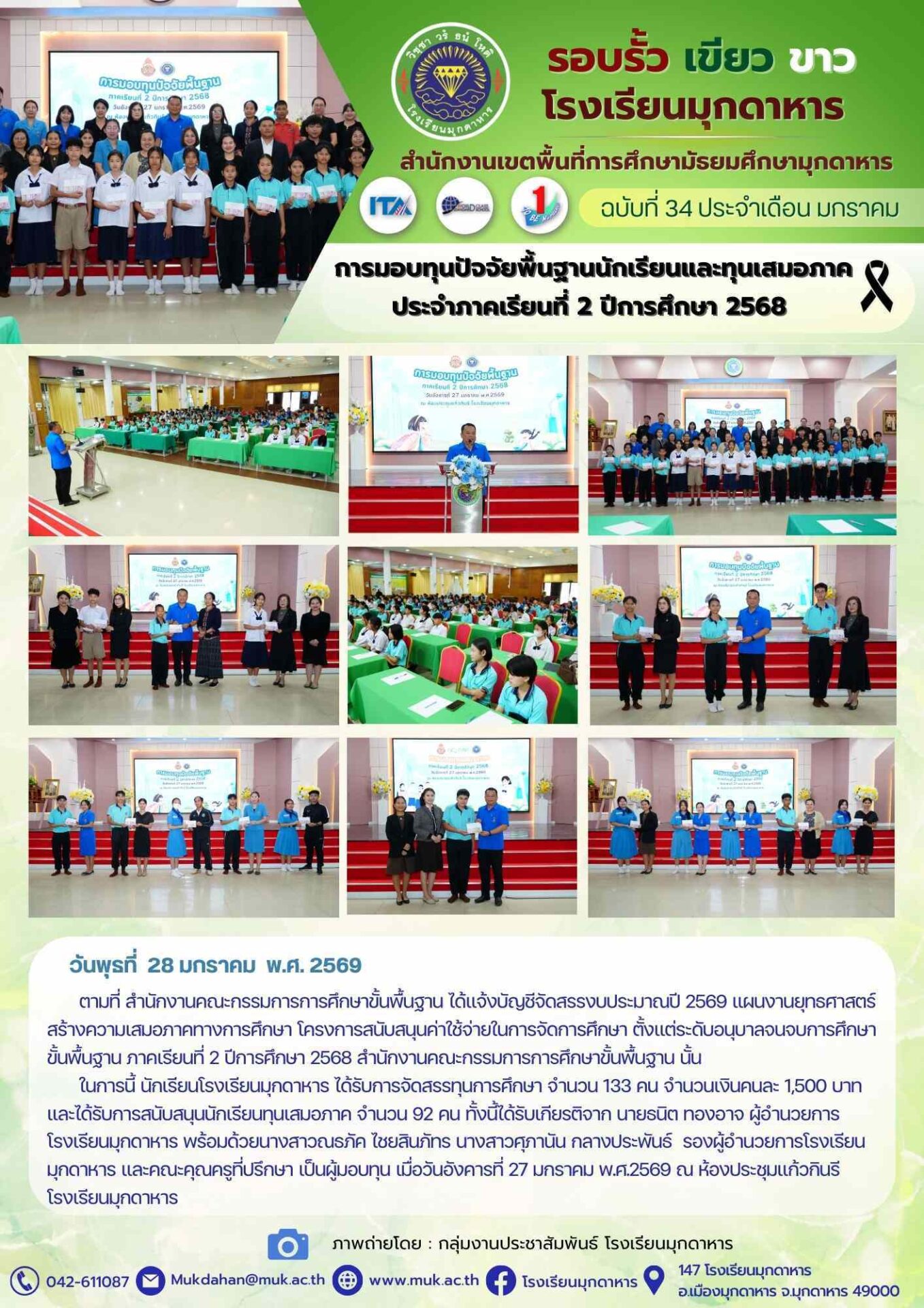 โรงเรียนมุกดาหาร ฉบับที่ 34 วันที่ 28 มกราคม 2569 / จดหมายข่าวโรงเรียนในสังกัด / By พิมพ์ธิดา อารีรักษ์