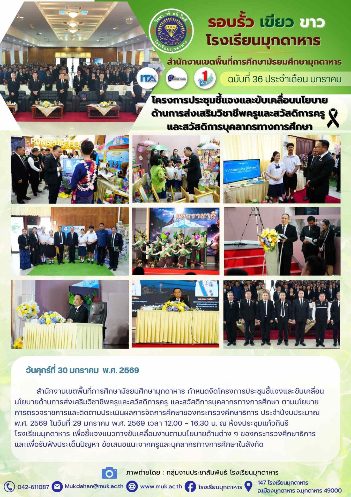 โรงเรียนมุกดาหาร ฉบับที่ 36 วันที่ 30 มกราคม 2569