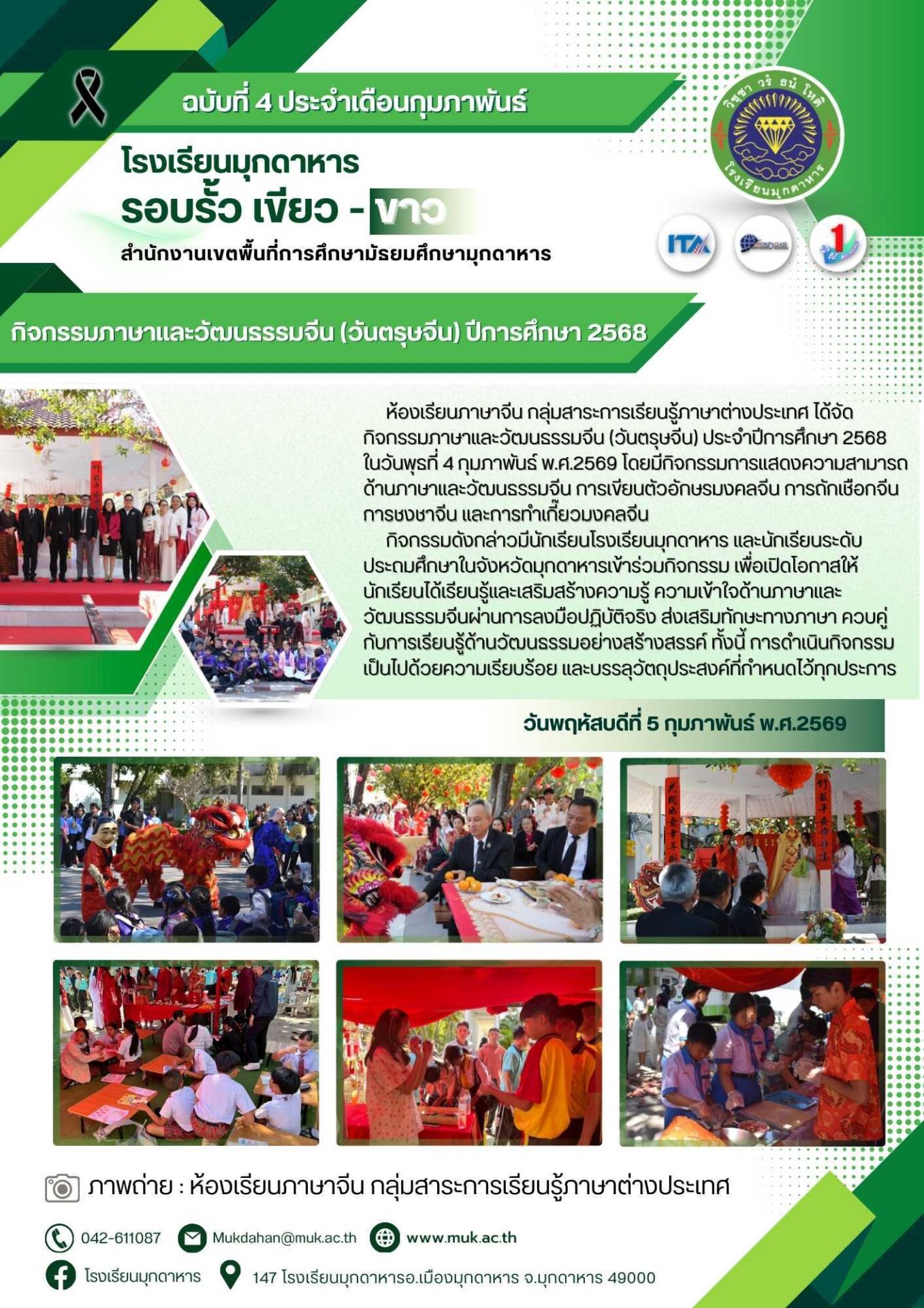 โรงเรียนมุกดาหาร ฉบับที่ 4 วันที่ 5 กุมภาพันธ์ 2569 / จดหมายข่าวโรงเรียนในสังกัด / By พิมพ์ธิดา อารีรักษ์