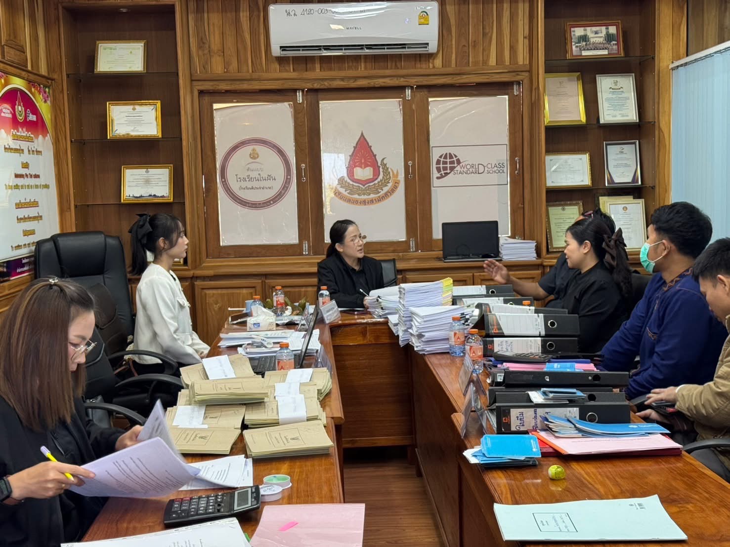 คณะกรรมการตรวจสอบภายในสถานศึกษา สำนักงานเขตพื้นที่การศึกษามัธยมศึกษามุกดาหาร ได้ดำเนินการติดตามและตรวจสอบการบริหารงบประมาณ การเงิน การบัญชี และพัสดุของสถานศึกษาในสังกัด ตามแผนการตรวจสอบภายใน ประจำปีงบประมาณ พ.ศ. 2569 โดยได้เข้าตรวจสอบเอกสารของโรงเรียนหนองสูงสามัคคีวิทยา เพื่อประเมินผลการปฏิบัติงานด้านการเงิน การบัญชี และพัสดุ รวมทั้งให้ข้อเสนอแนะและแนวทางในการปรับปรุงแก้ไขให้เป็นไปตามกฎหมาย ระเบียบ และข้อบังคับที่เกี่ยวข้องอย่างถูกต้อง ทันสมัย โปร่งใส และสามารถตรวจสอบได้ ในการนี้ นายเนรมิต กฤตาคม ผู้อำนวยการโรงเรียนหนองสูงสามัคคีวิทยา พร้อมด้วยคณะผู้บริหาร ครู และผู้เกี่ยวข้อง ได้ร่วมกันนำเสนอเอกสารและให้ข้อมูลต่อคณะกรรมการตรวจสอบภายใน ณ ห้องประชุมโรงเรียนหนองสูงสามัคคีวิทยา