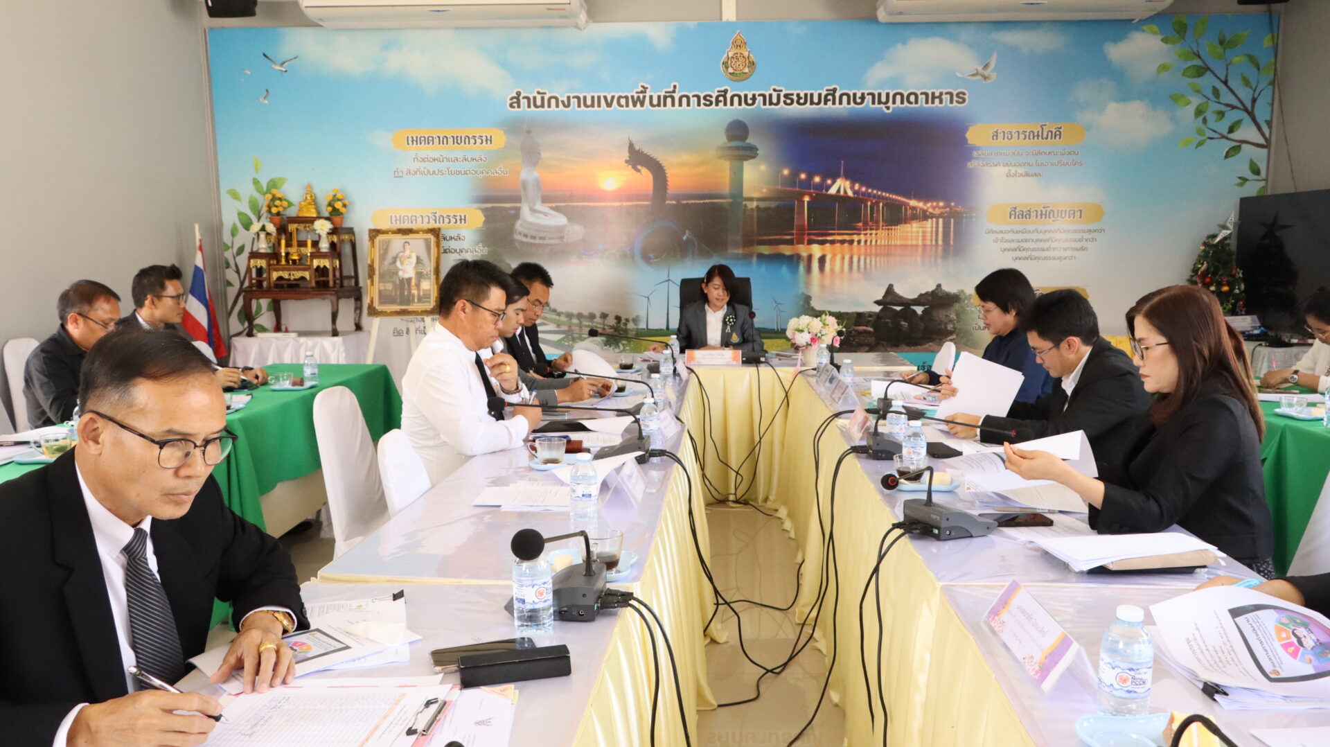 ดร.พลชัย ชุมปัญญา ผอ.สพม.มุกดาหาร มอบหมายให้ นางวริศรา สัพโส รอง ผอ.สพม.มุกดาหาร เป็นประธานการประชุมคณะกรรมการพิจารณาการเก็บเงินบำรุงการศึกษา ประจำปีการศึกษา 2569 เพื่อพิจารณาการจัดเก็บค่าใช้จ่ายตามหลักเกณฑ์การเก็บเงินบำรุงการศึกษา ประจำปีการศึกษา 2569 โดยมีคณะกรรมการโรงเรียนที่ได้รับการแต่งตั้ง ผู้บริหารสถานศึกษา และครู เข้าร่วมการประชุม ณ ห้องประชุมขวัญมุกดา สำนักงานเขตพื้นที่การศึกษามัธยมศึกษามุกดาหาร