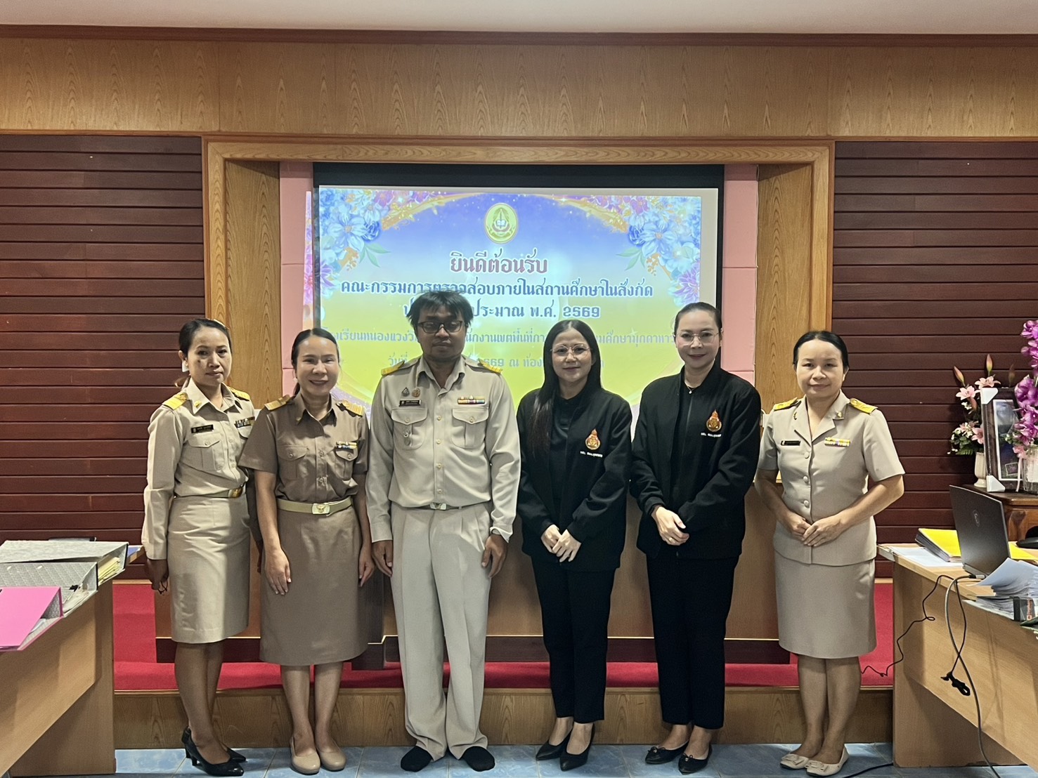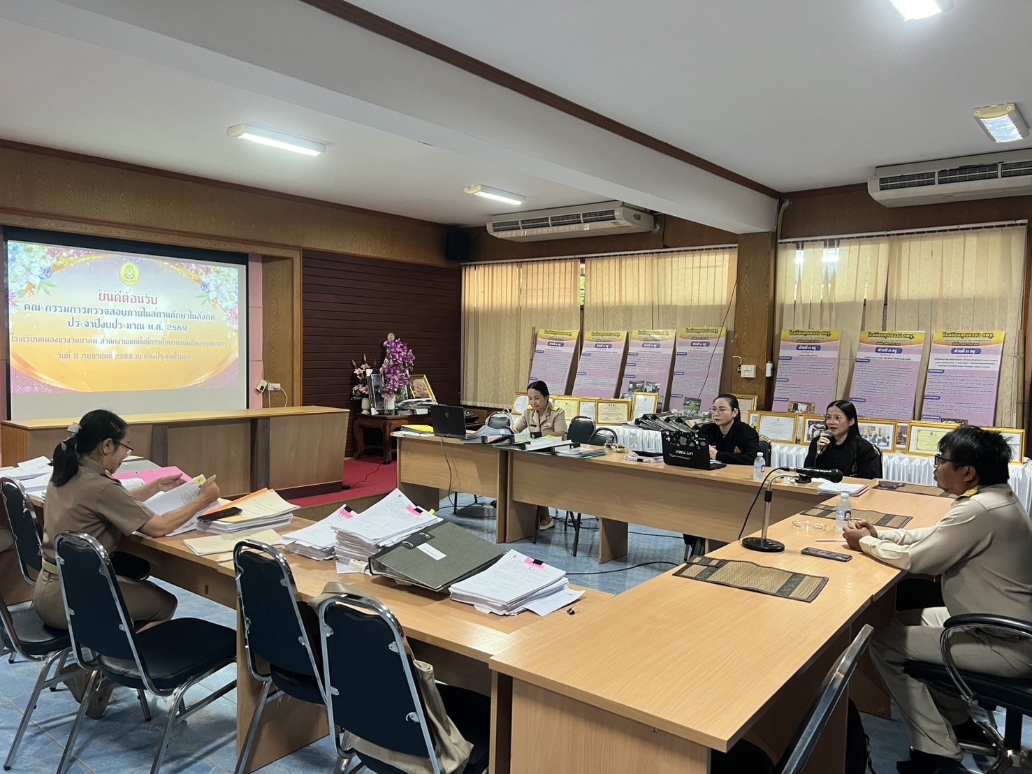 คณะกรรมการตรวจสอบภายในสถานศึกษา สำนักงานเขตพื้นที่การศึกษามัธยมศึกษามุกดาหาร ได้ดำเนินการติดตามและตรวจสอบการบริหารงบประมาณ การเงิน การบัญชี และพัสดุของสถานศึกษาในสังกัด ตามแผนการตรวจสอบภายใน ประจำปีงบประมาณ พ.ศ. 2569 โดยได้เข้าตรวจสอบเอกสารของโรงเรียนหนองแวงวิทยาคม เพื่อประเมินผลการปฏิบัติงานด้านการเงิน การบัญชี และพัสดุ รวมทั้งให้ข้อเสนอแนะและแนวทางในการปรับปรุงแก้ไขให้เป็นไปตามกฎหมาย ระเบียบ และข้อบังคับที่เกี่ยวข้องอย่างถูกต้อง ทันสมัย โปร่งใส และสามารถตรวจสอบได้ ในการนี้ นายพิภพ นาทองลาย ผู้อำนวยการโรงเรียนหนองแวงวิทยาคม พร้อมด้วยคณะผู้บริหาร ครู และผู้เกี่ยวข้อง ได้ร่วมกันนำเสนอเอกสารและให้ข้อมูลต่อคณะกรรมการตรวจสอบภายใน ณ ห้องประชุมโรงเรียนหนองแวงวิทยาคม