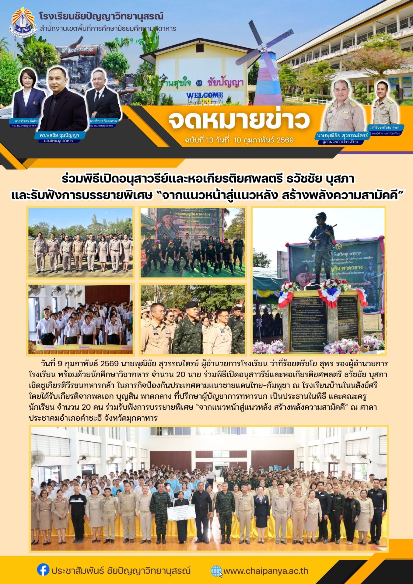 โรงเรียนชัยปัญญาวิทยานุสรณ์ ฉบับที่ 13/2569 วันที่ 9 กุมภาพันธ์ 2569