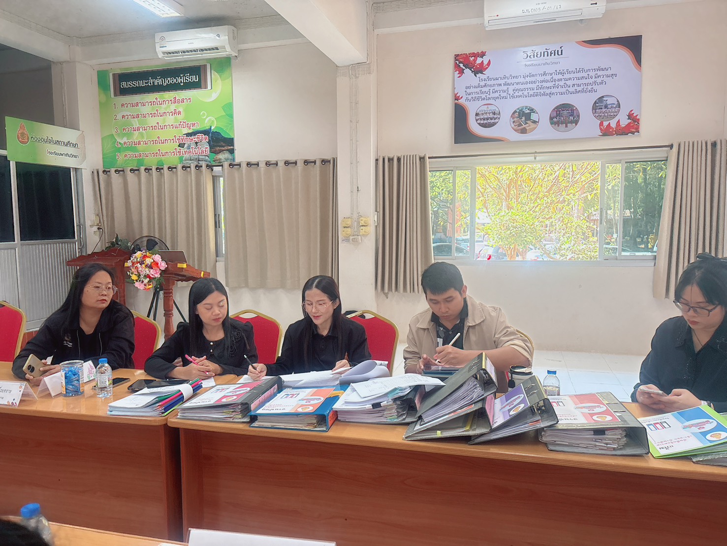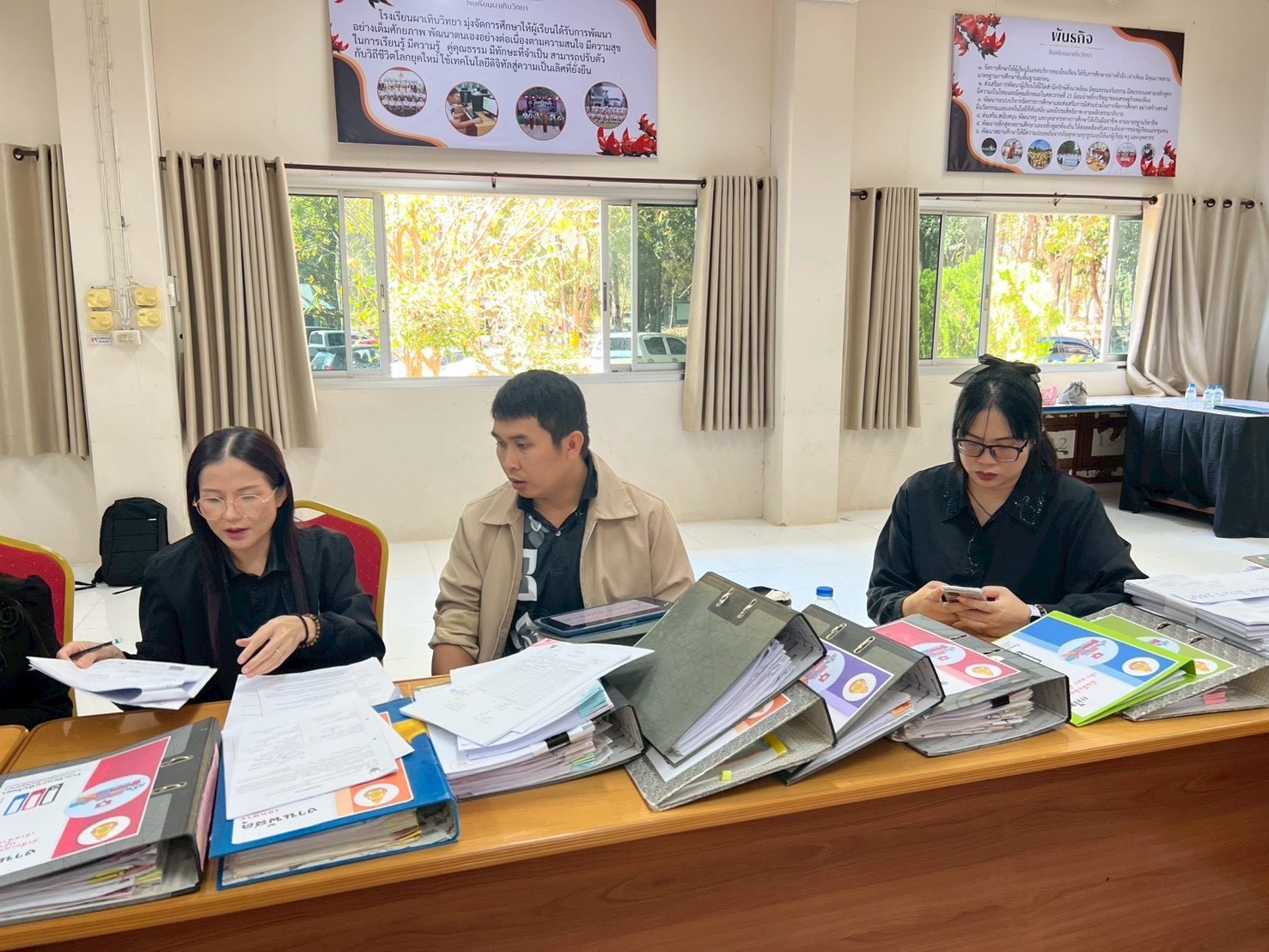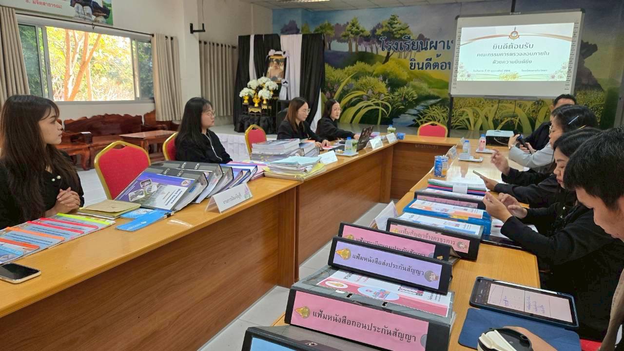คณะกรรมการตรวจสอบภายในสถานศึกษา สำนักงานเขตพื้นที่การศึกษามัธยมศึกษามุกดาหาร ได้ดำเนินการติดตามและตรวจสอบการบริหารงบประมาณ การเงิน การบัญชี และพัสดุของสถานศึกษาในสังกัด ตามแผนการตรวจสอบภายใน ประจำปีงบประมาณ พ.ศ. 2569 โดยได้เข้าตรวจสอบเอกสารของโรงเรียนผาเทิบวิทยา เพื่อประเมินผลการปฏิบัติงานด้านการเงิน การบัญชี และพัสดุ รวมทั้งให้ข้อเสนอแนะและแนวทางในการปรับปรุงแก้ไขให้เป็นไปตามกฎหมาย ระเบียบ และข้อบังคับที่เกี่ยวข้องอย่างถูกต้อง ทันสมัย โปร่งใส และสามารถตรวจสอบได้ ในการนี้ นายปิโย ลุสุข ผู้อำนวยการโรงเรียนผาเทิบวิทยา พร้อมด้วยคณะผู้บริหาร ครู และผู้เกี่ยวข้อง ได้ร่วมกันนำเสนอเอกสารและให้ข้อมูลต่อคณะกรรมการตรวจสอบภายใน ณ ห้องประชุมโรงเรียนผาเทิบวิทยา