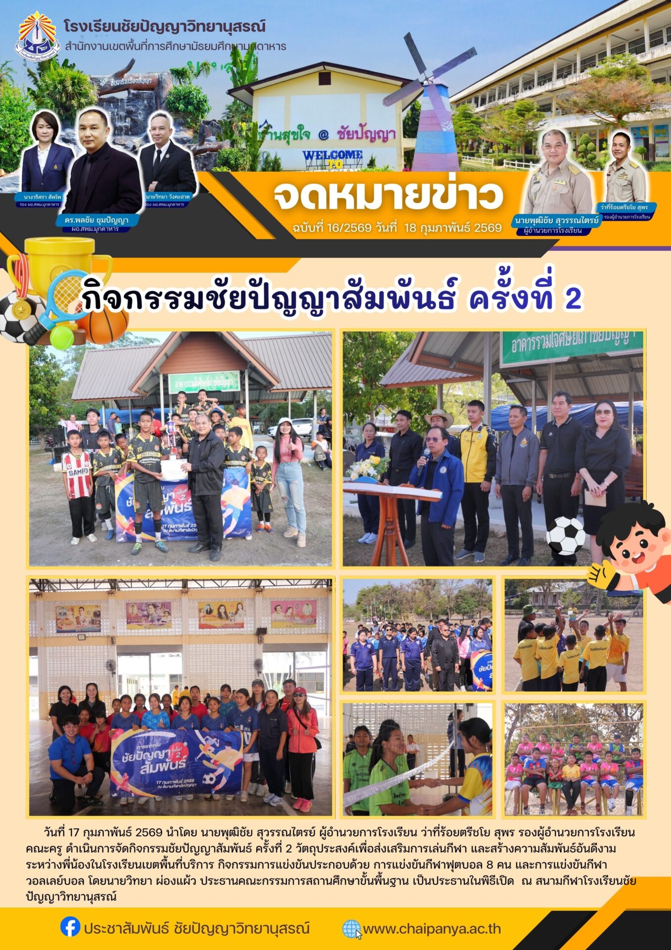โรงเรียนชัยปัญญาวิทยานุสรณ์ ฉบับที่ 16/2569 วันที่ 18 กุมภาพันธ์ 2569 / จดหมายข่าวโรงเรียนในสังกัด / By สุดารัตน์ ผ่องแผ้ว รร.ชัยปัญญาวิทยานุสรณ์