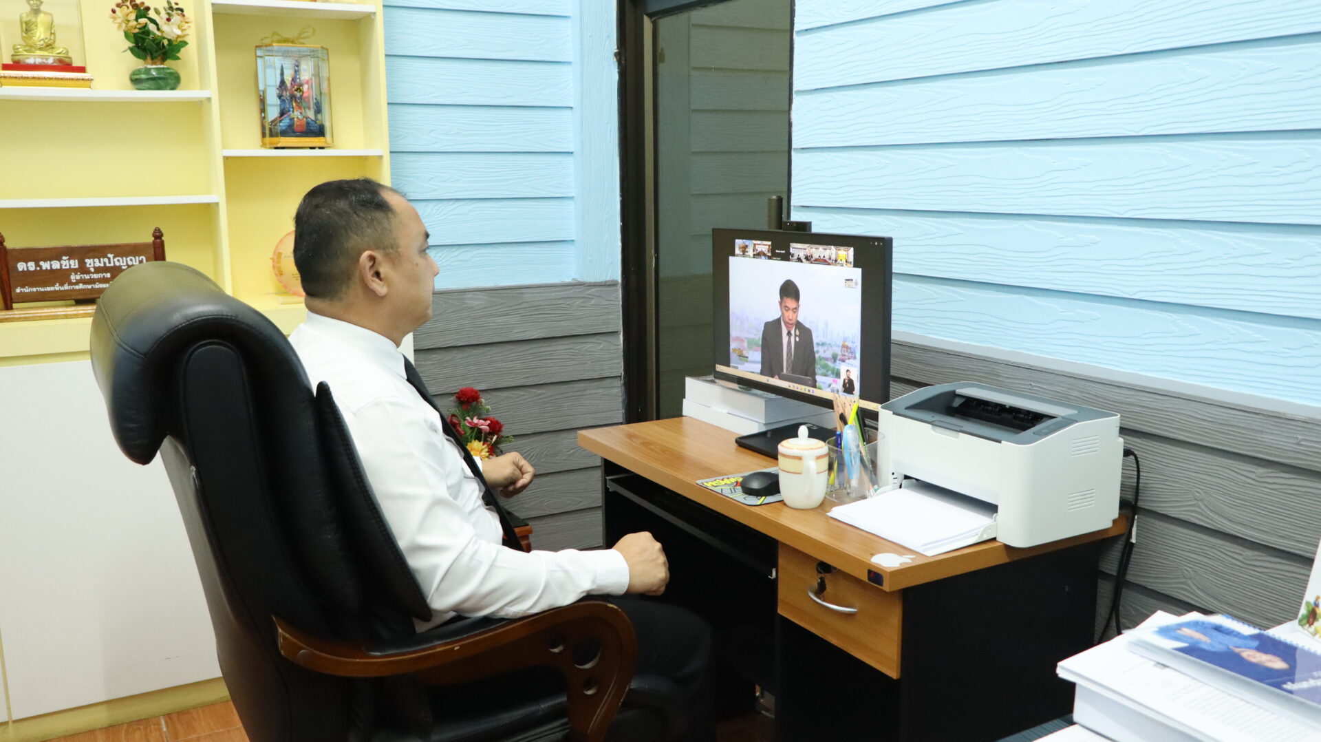 ดร.พลชัย ชุมปัญญา ผอ.สพม.มุกดาหาร พร้อมด้วยผู้อำนวยการกลุ่ม/หน่วย และบุคลากรในสังกัด เข้าร่วมรับชมรายการ “พฤหัสเช้า ข่าว สพฐ.” ครั้งที่ 7 /2569 ผ่านระบบ Video Conference เพื่อรับทราบนโยบาย แนวทางการดำเนินงาน และข้อสั่งการจากสำนักงานคณะกรรมการการศึกษาขั้นพื้นฐาน (สพฐ.) เพื่อนำไปสู่การขับเคลื่อนการดำเนินงานในระดับพื้นที่อย่างมีประสิทธิภาพภายหลังการรับชมรายการ เพื่อแจ้งข้อราชการ ติดตามผลการปฏิบัติงานของกลุ่มงานต่าง ๆ รวมถึงรับฟังปัญหา อุปสรรค และข้อเสนอแนะในการบริหารจัดการศึกษา โดยเปิดโอกาสให้บุคลากรได้ร่วมแลกเปลี่ยนความคิดเห็นอย่างสร้างสรรค์ทั้งนี้ การประชุมดังกล่าวมีเป้าหมายเพื่อเสริมสร้างความเข้าใจที่ตรงกัน พัฒนาระบบการทำงานร่วมกัน และยกระดับประสิทธิภาพการบริหารจัดการศึกษาให้เกิด ประโยชน์สูงสุดต่อสถานศึกษาและผู้เรียนในสังกัดต่อไป