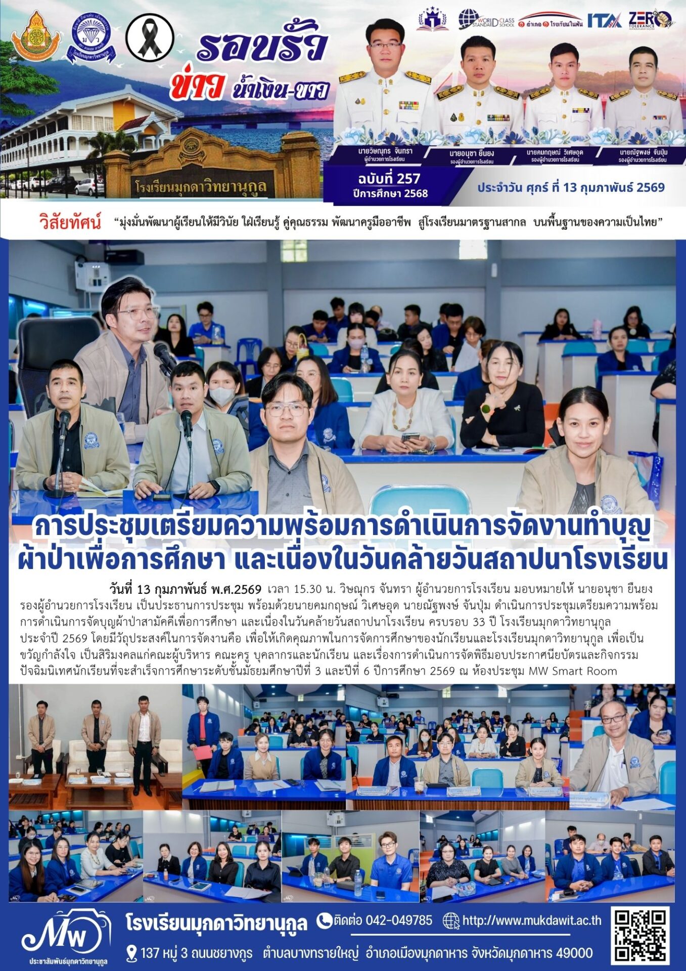 โรงเรียนมุกดาวิทยานุกูล ฉบับที่ 254-257 วันที่ 13 กุมภาพันธ์ 2569