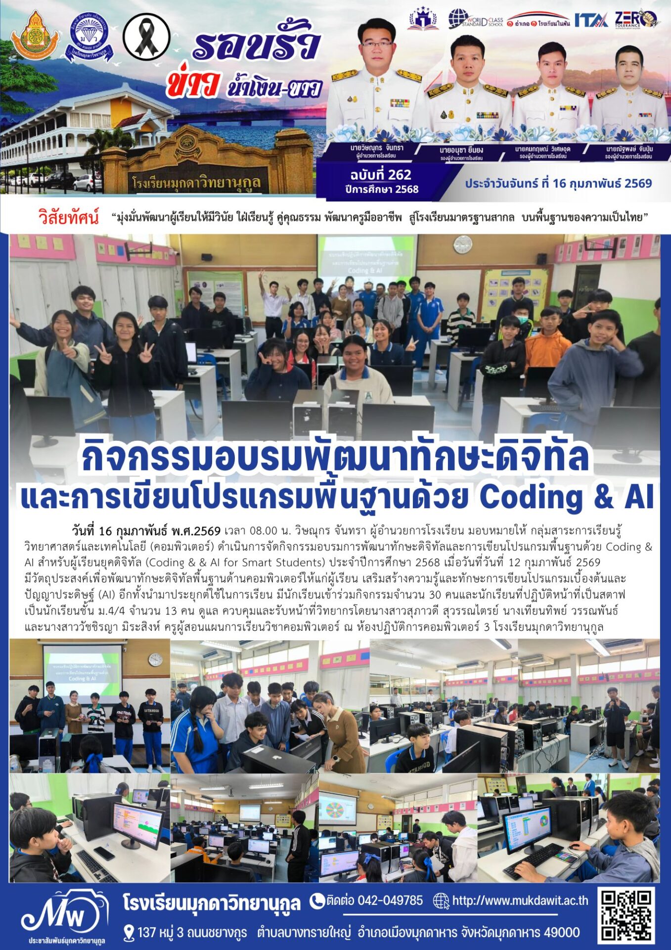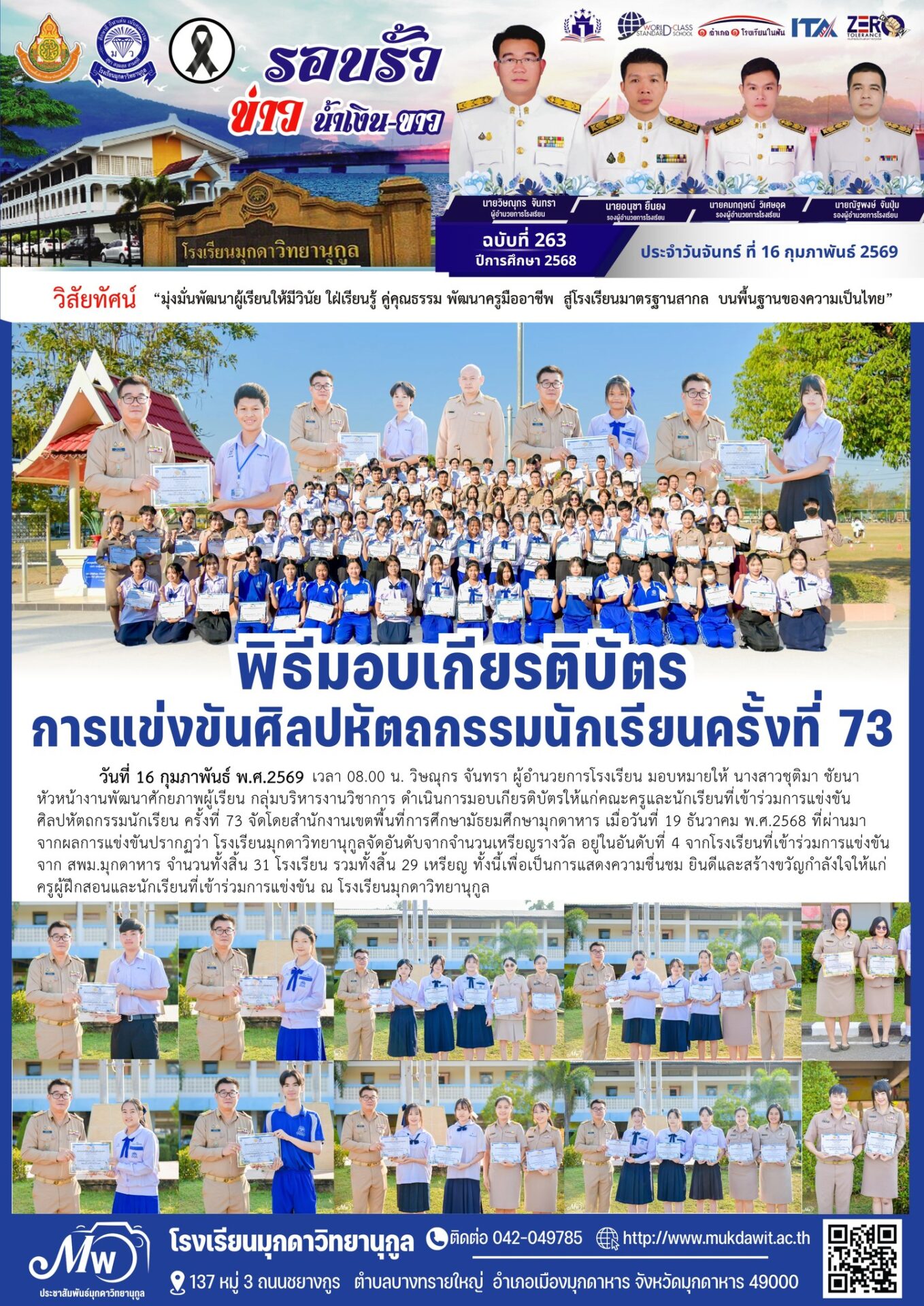 โรงเรียนมุกดาวิทยานุกูล ฉบับที่ 262-263 วันที่ 15 กุมภาพันธ์ 2569 / จดหมายข่าวโรงเรียนในสังกัด / By ชุติมา ชัยนา รร.มุกดาวิทยานุกูล