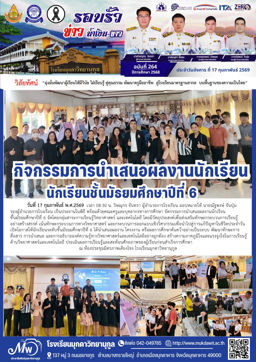 โรงเรียนมุกดาวิทยานุกูล ฉบับที่ 264-265 วันที่ 17 กุมภาพันธ์ 2569