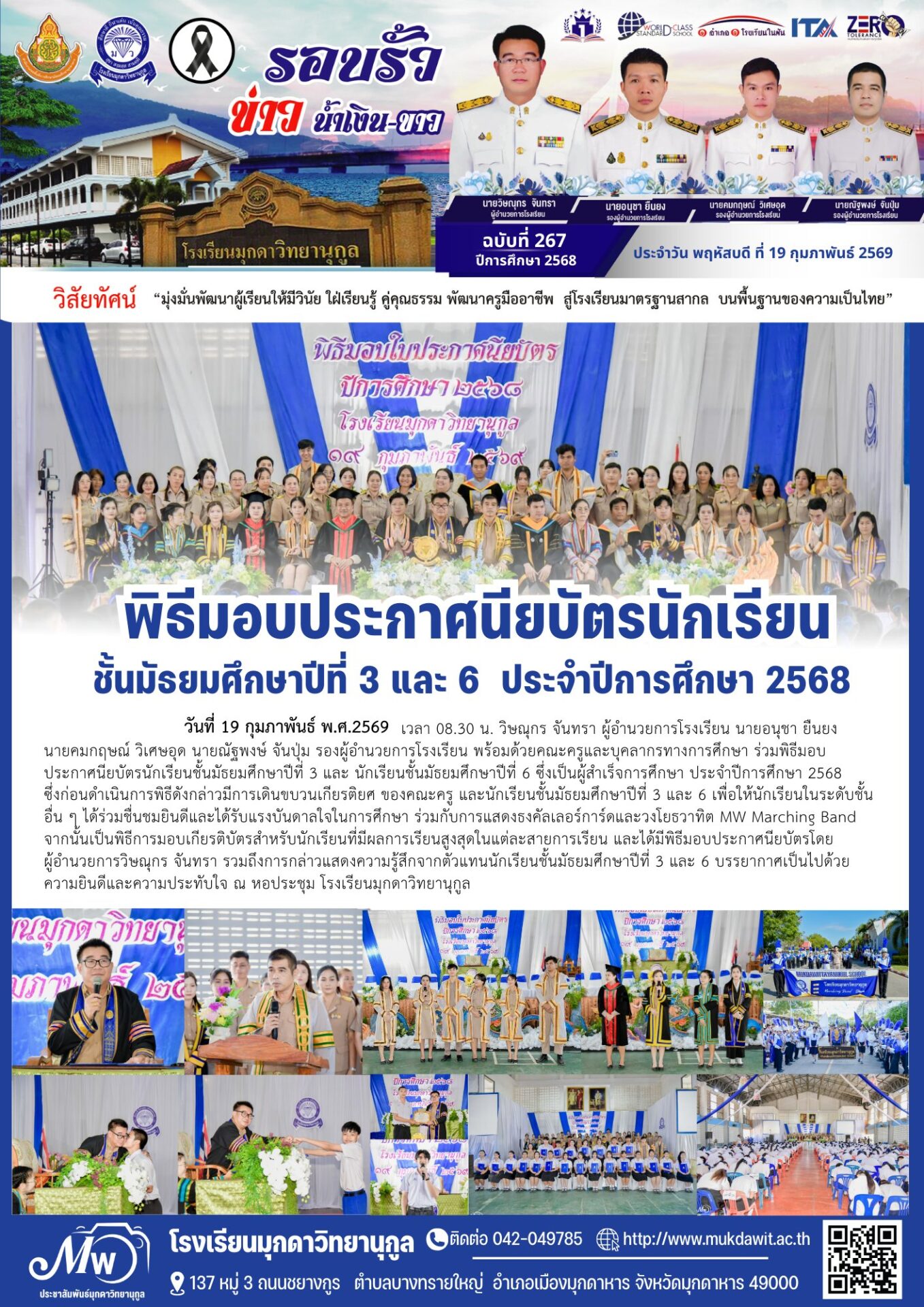 โรงเรียนมุกดาวิทยานุกูล ฉบับที่ 267-268 วันที่ 19 กุมภาพันธ์ 2569 / จดหมายข่าวโรงเรียนในสังกัด / By ชุติมา ชัยนา รร.มุกดาวิทยานุกูล