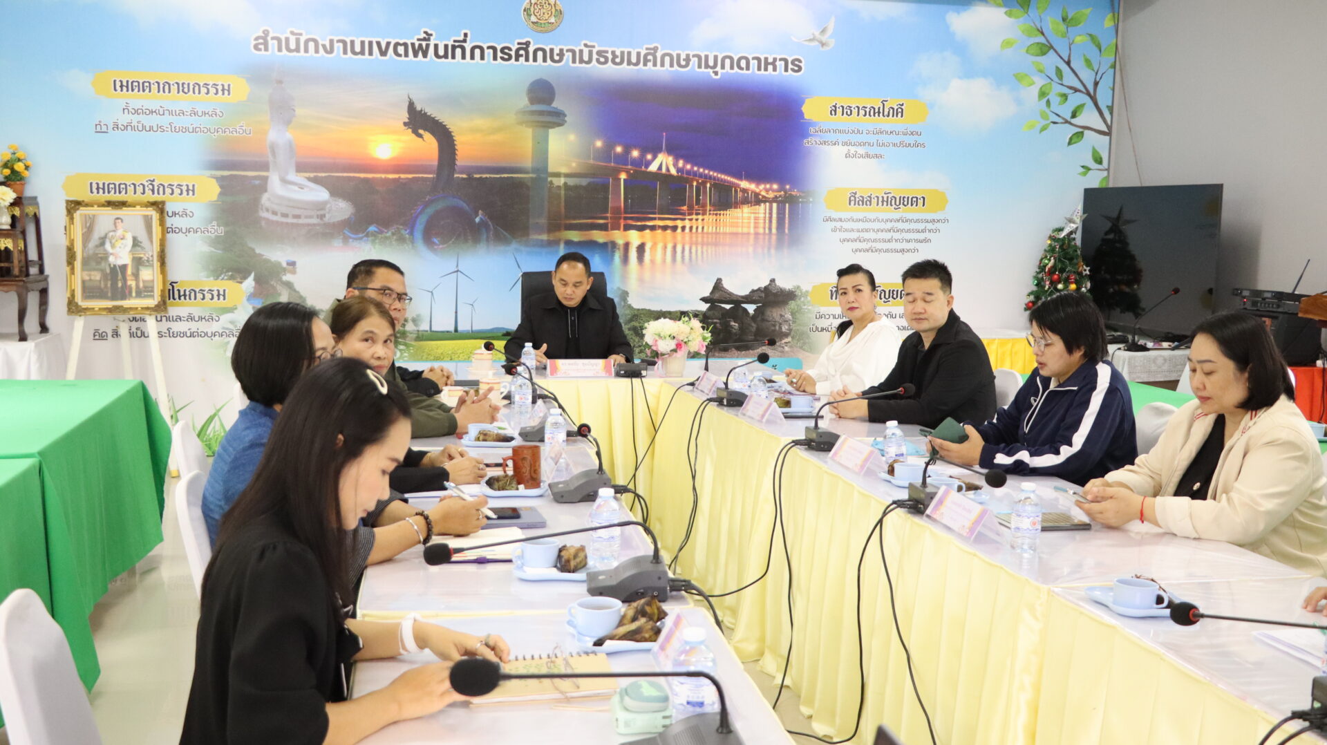 ดร.พลชัย ชุมปัญญา ผู้อำนวยการสำนักงานเขตพื้นที่การศึกษามัธยมศึกษามุกดาหาร พร้อมด้วย นายวิทยา วังคะฮาต รองผู้อำนวยการสำนักงานเขตพื้นที่การศึกษามัธยมศึกษามุกดาหาร และผู้อำนวยการกลุ่ม/หน่วย สพม.มุกดาหาร เข้าร่วมประชุมการตรวจราชการและติดตามประเมินผลตามนโยบายการตรวจราชการของกระทรวงศึกษาธิการประจำปีงบประมาณ พ.ศ. 2569 (รอบที่ 1) เขตตรวจราชการที่ 11 ผ่านระบบ Zoom Meeting โดยการประชุมครั้งนี้ จัดขึ้นเพื่อรับมอบนโยบายการตรวจราชการ และติดตามประเมินผลการขับเคลื่อนนโยบายของกระทรวงศึกษาธิการโดยมี ดร.นิยม ไผ่โสภา ผู้ตรวจราชการกระทรวงศึกษาธิการ เขตตรวจราชการที่ 11 เป็นผู้มอบนโยบาย ทั้งนี้ สำนักงานเขตพื้นที่การศึกษามัธยมศึกษามุกดาหาร พร้อมน้อมรับแนวทางและข้อเสนอแนะเพื่อยกระดับคุณภาพการจัดการศึกษาให้เกิดประสิทธิภาพและประสิทธิผลสูงสุดต่อไป ณ ห้องประชุมขวัญมุกดา สพม.มุกดาหาร