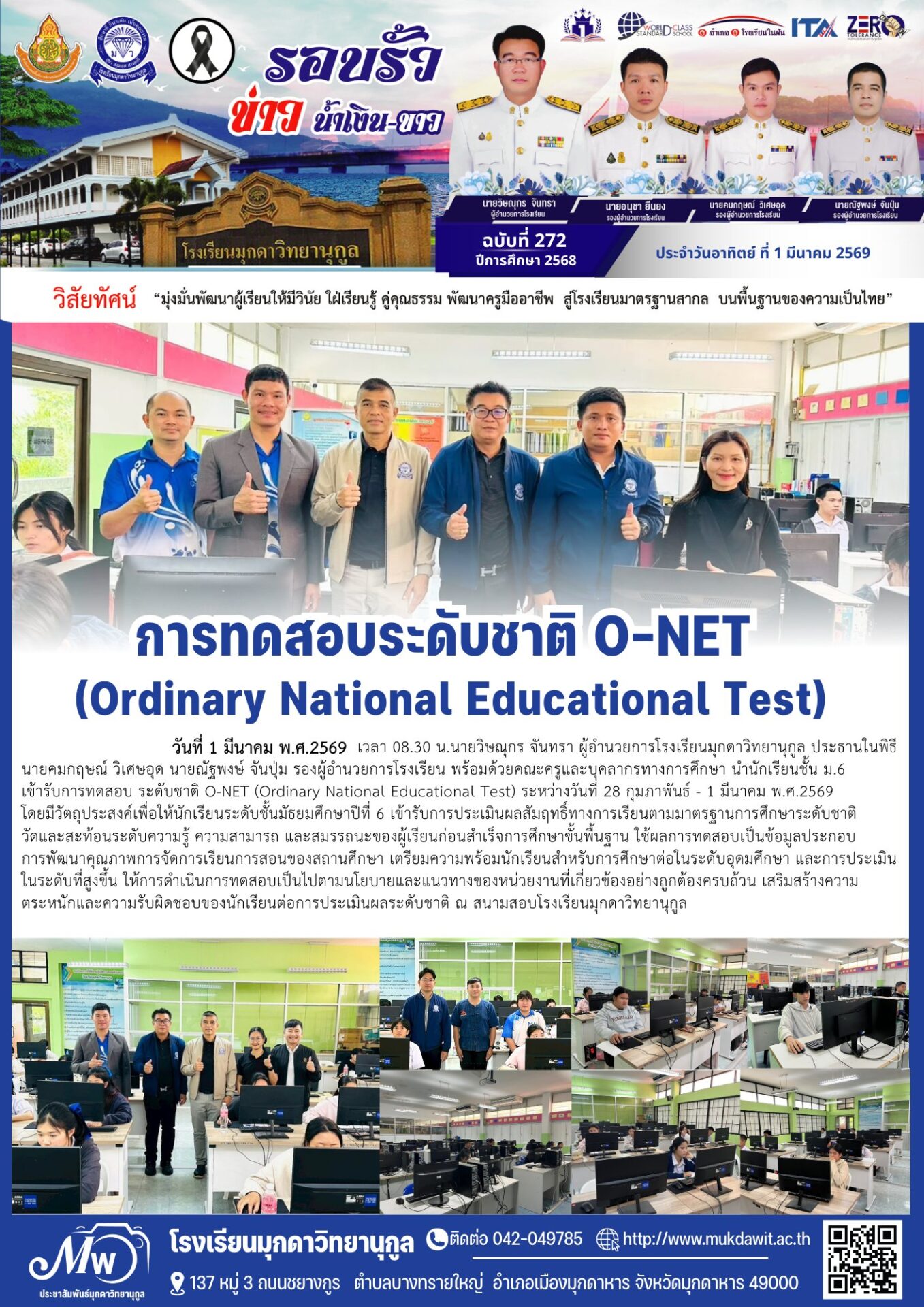 โรงเรียนมุกดาวิทยานุกูล ฉบับที่ 272 วันที่ 1 มีนาคม 2569 / จดหมายข่าวโรงเรียนในสังกัด / By ชุติมา ชัยนา รร.มุกดาวิทยานุกูล