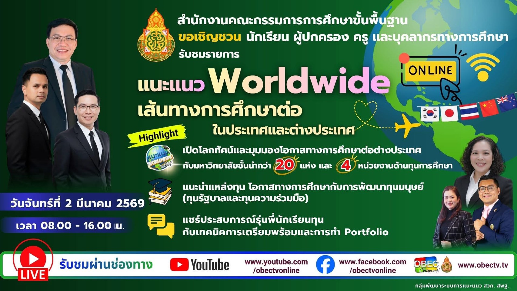 ดร.พลชัย ชุมปัญญา ผู้อำนวยการสำนักงานเขตพื้นที่การศึกษามัธยมศึกษามุกดาหาร มอบหมายให้ นายวิทยา วังคะฮาต รองผู้อำนวยการสำนักงานเขตพื้นที่การศึกษามัธยมศึกษามุกดาหาร พร้อมด้วย บุคลากรกลุ่มนิเทศ ติดตาม และประเมินผลการจัดการศึกษา และกลุ่มส่งเสริมการจัดการศึกษา เข้าร่วมการประชุมแนะแนว WorldWide เส้นทางศึกษาต่อในประเทศและต่างประเทศ (WorldWide Guidance: Pathways to study in Thailand and Abroad) โดยมี ดร.วิษณุ ทรัพย์สมบัติ รองเลขาธิการคณะกรรมการการศึกษาขั้นพื้นฐานเป็นประธานเปิดการประชุมผ่านระบบออนไลน์