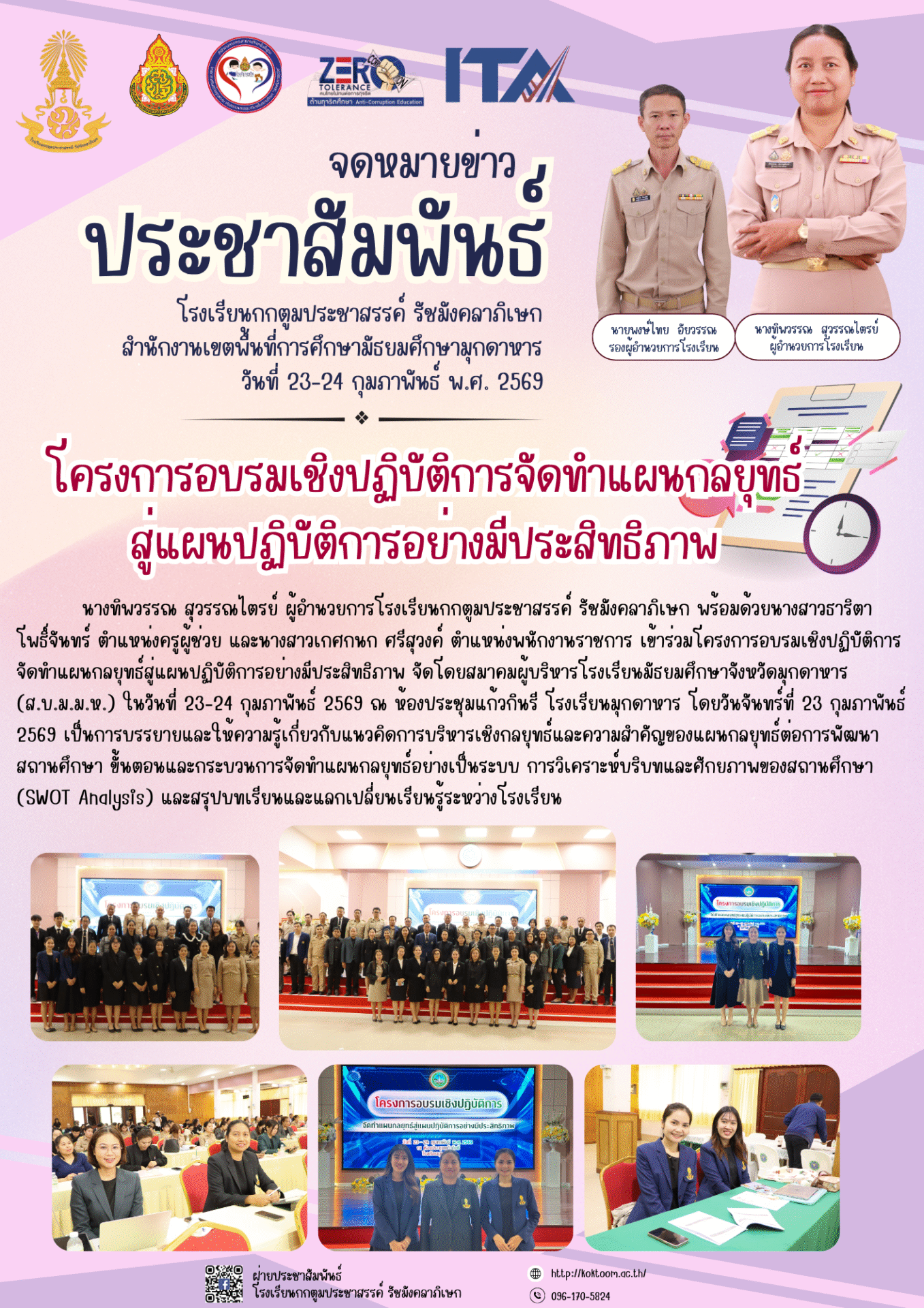 โรงเรียนกกตูมประชาสรรค์ รัชมังคลาภิเษก ฉบับวันที่ 23-24 กุมภาพันธ์ พ.ศ.2569 / จดหมายข่าวโรงเรียนในสังกัด / By สุนันทา นาแพงหมื่น รร.กกตูมประชาสรรค์ รัชมังคลาภิเษก