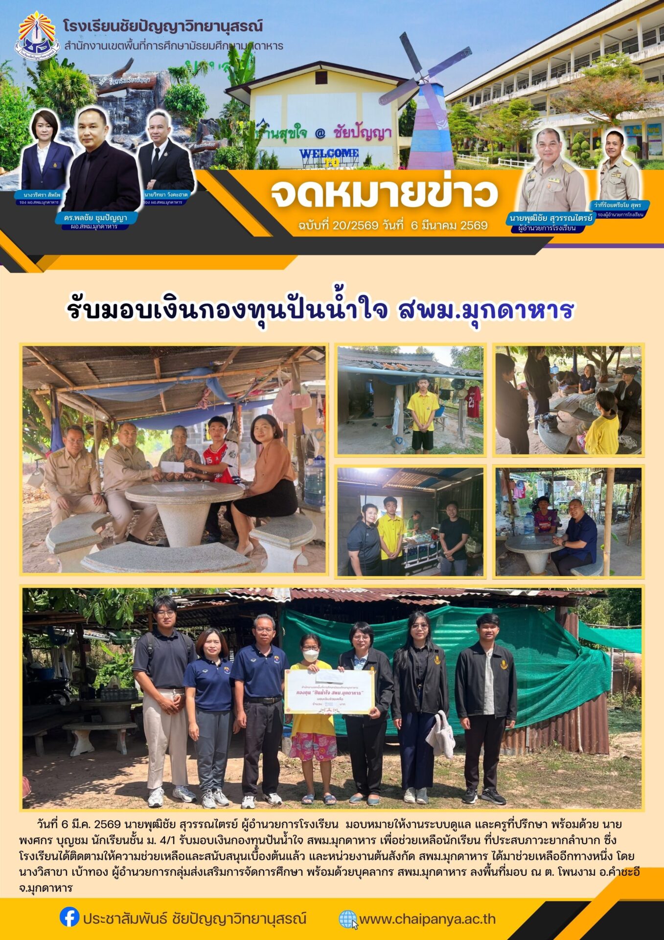โรงเรียนชัยปัญญาวิทยานุสรณ์ ฉบับที่ 20/2569 วันที่ 6 มีนาคม 2569