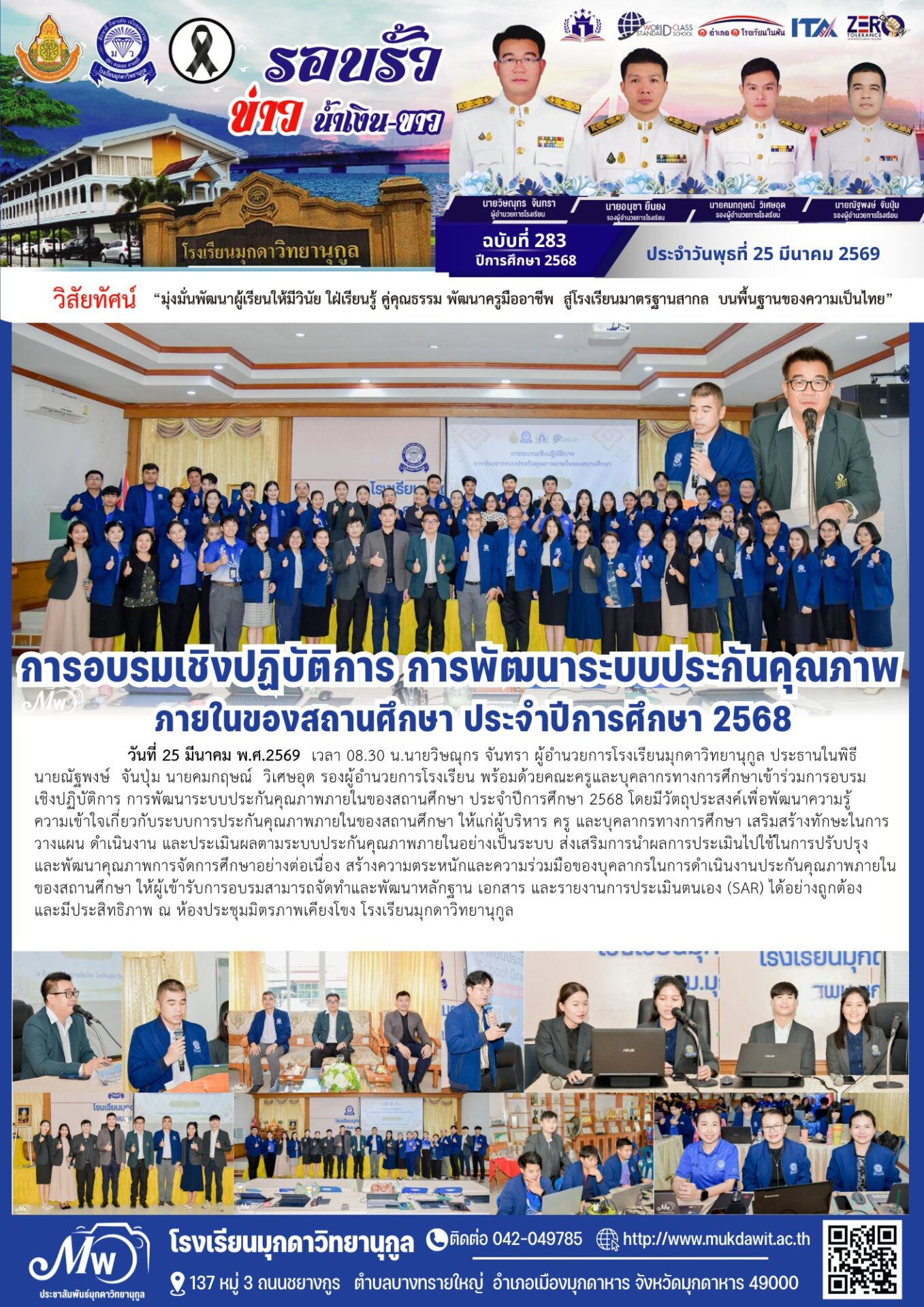 โรงเรียนมุกดาวิทยานุกูล ฉบับที่ 283 ประจำวันพุธที่ 25 มีนาคม 2569 / จดหมายข่าวโรงเรียนในสังกัด / By ชุติมา ชัยนา รร.มุกดาวิทยานุกูล